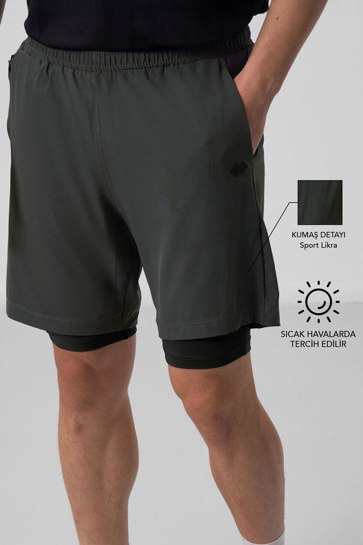 Haki İnce Yumuşak Standart Fit Erkek Taytlı Şort - 81287
