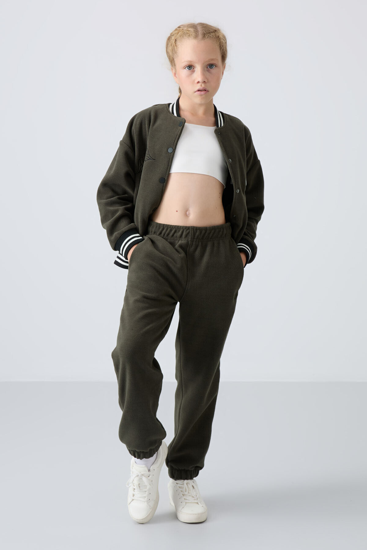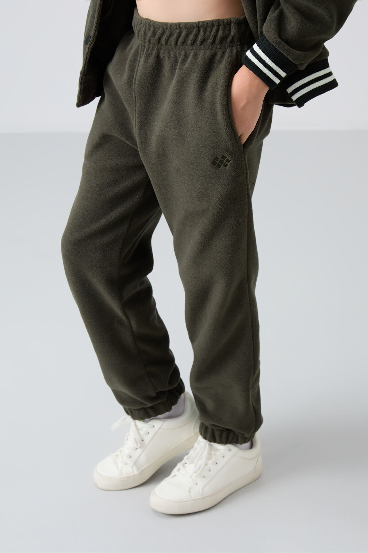 TommyLife Haki Kalın Yumuşak Dokulu Standart Fit Nakışlı Polar Kız Çocuk Eşofman Alt - 75155