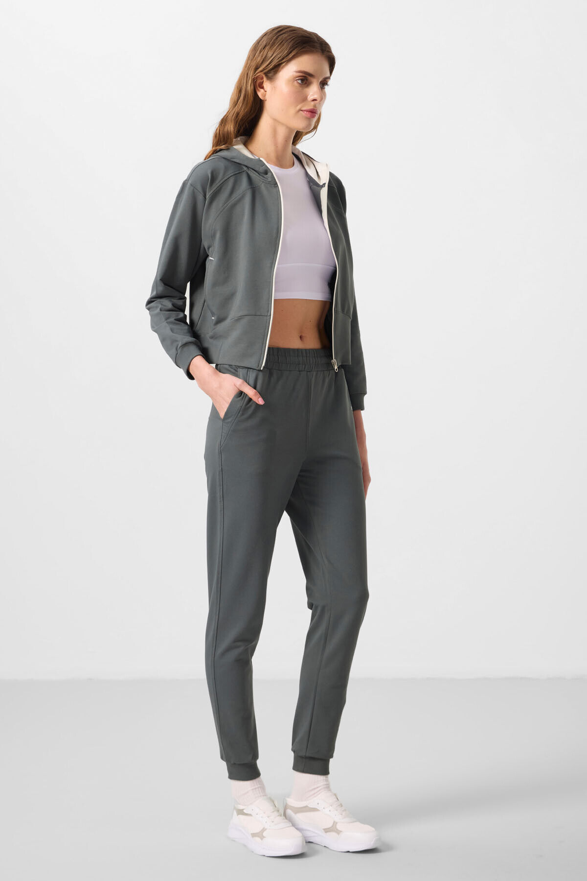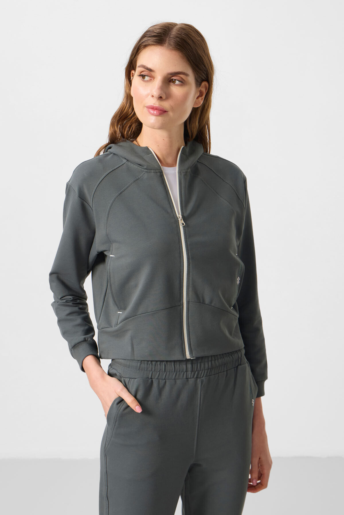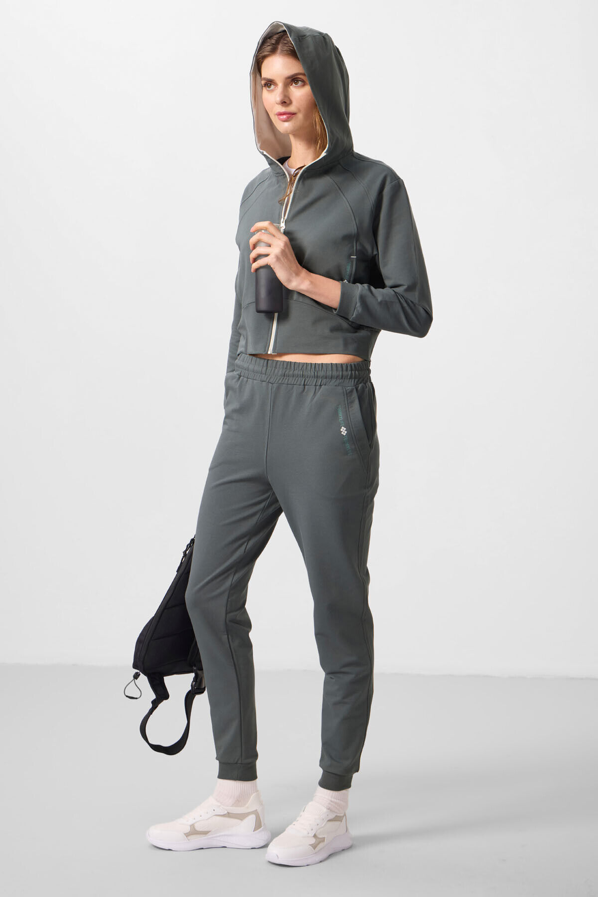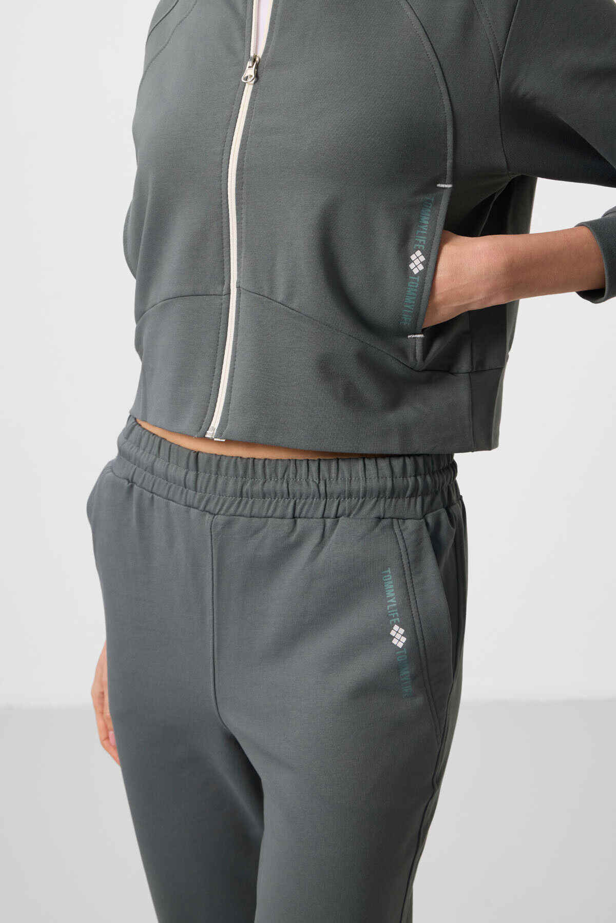 TommyLife Haki Kapüşonlu Fermuarlı Oversize Kadın Eşofman Takım - 95328