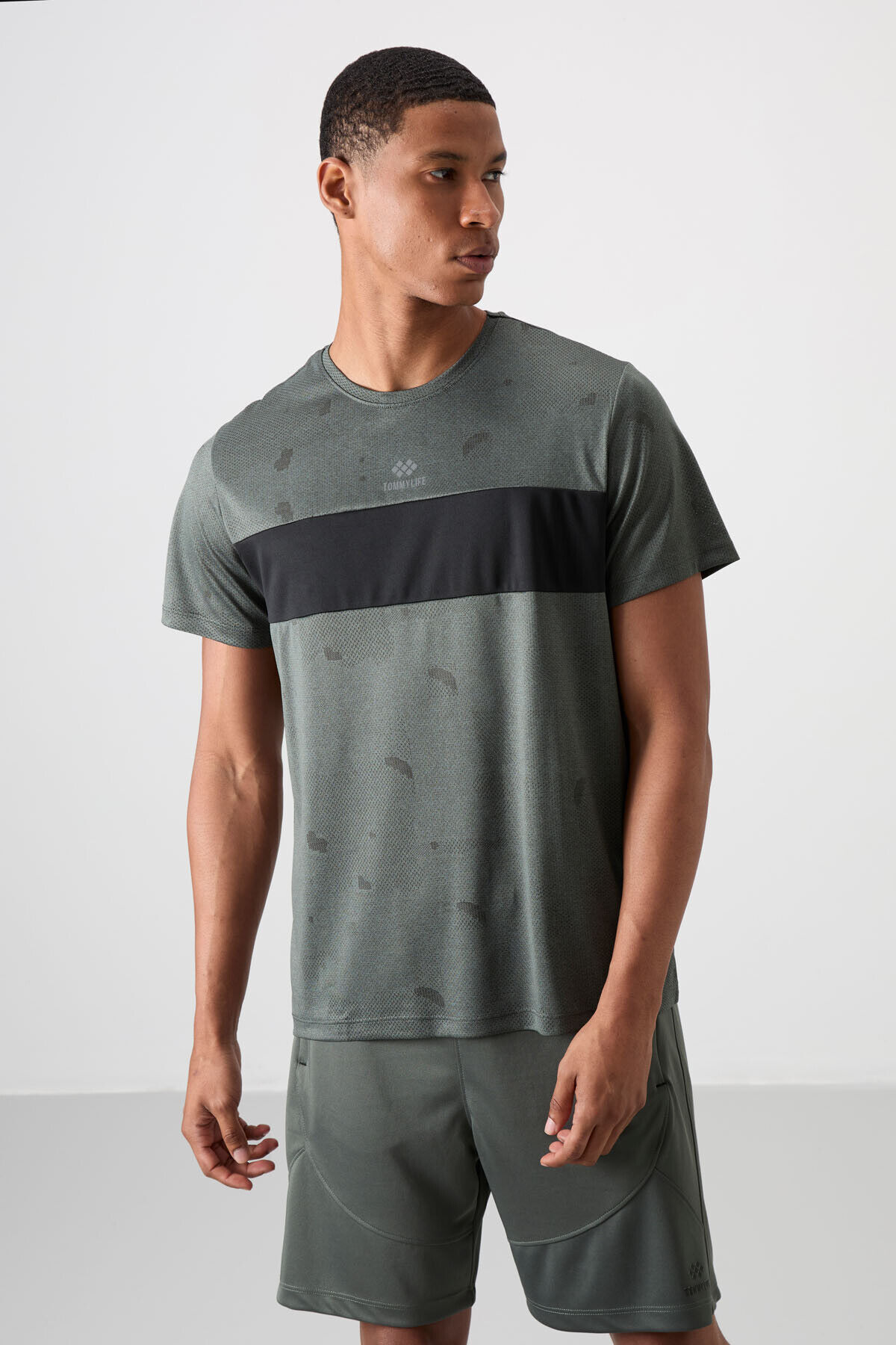 Haki Nefes Alan Jakarlı İnce Esnek Standart Fit Erkek Performans T-Shirt - 88398