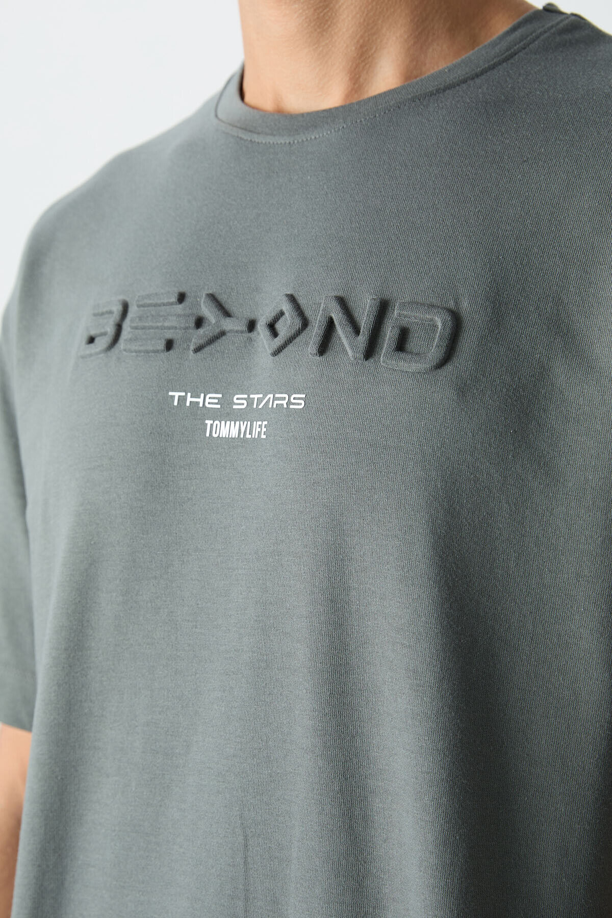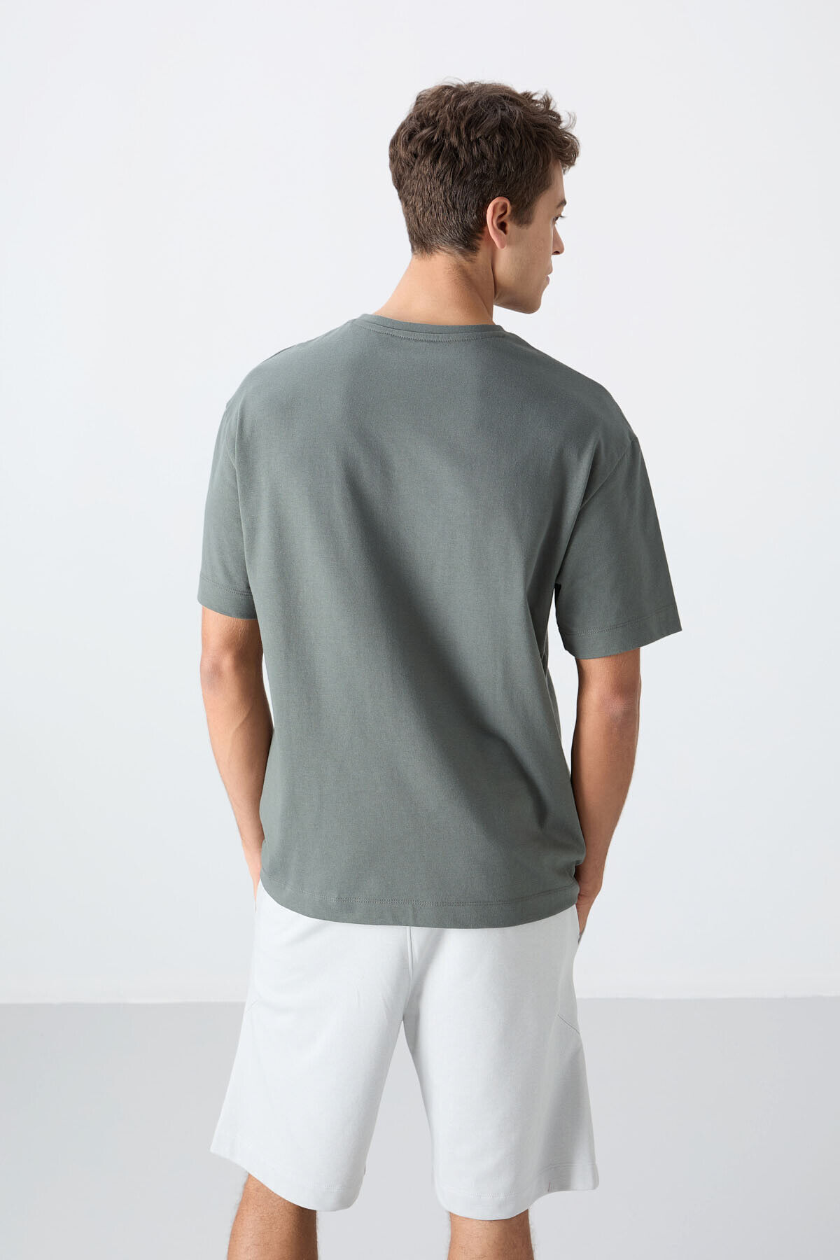 TommyLife Haki Pamuklu Kalın Yumuşak Dokulu Oversize Fit Baskılı Erkek T-Shirt - 88328