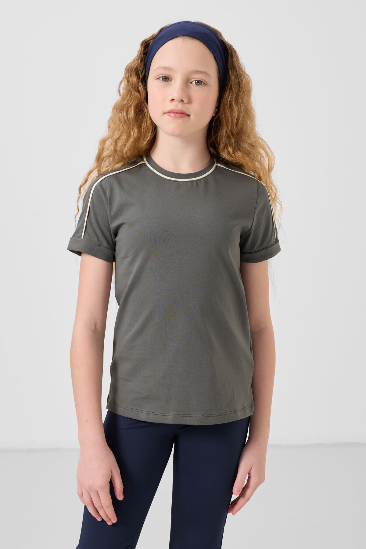 TommyLife Haki Pamuklu O Yaka Standart Fit Basic Kız Çocuk T-Shirt - 75177