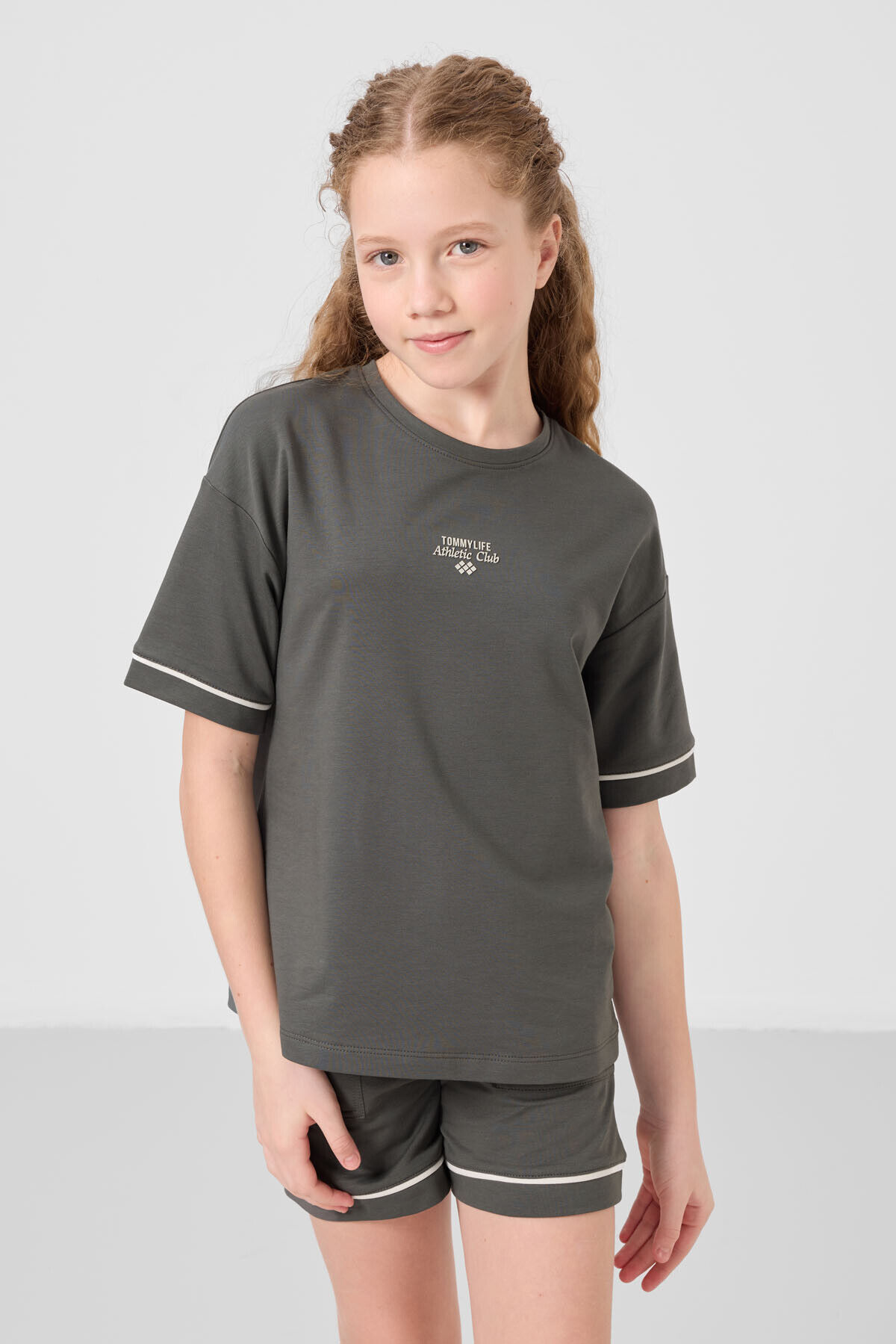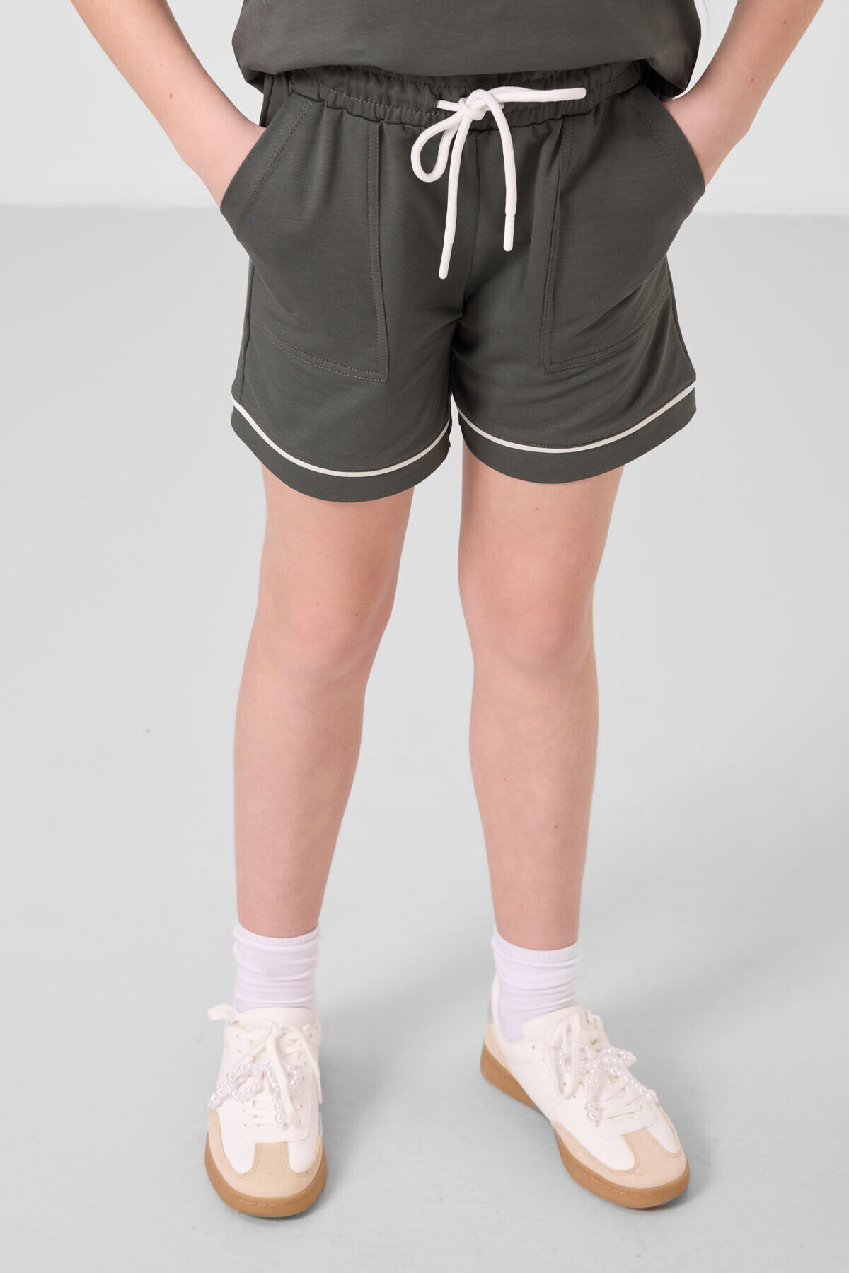 Haki Pamuklu Yumuşak Dokulu Standart Fit Basic Kız Çocuk Şort Takım - 75183