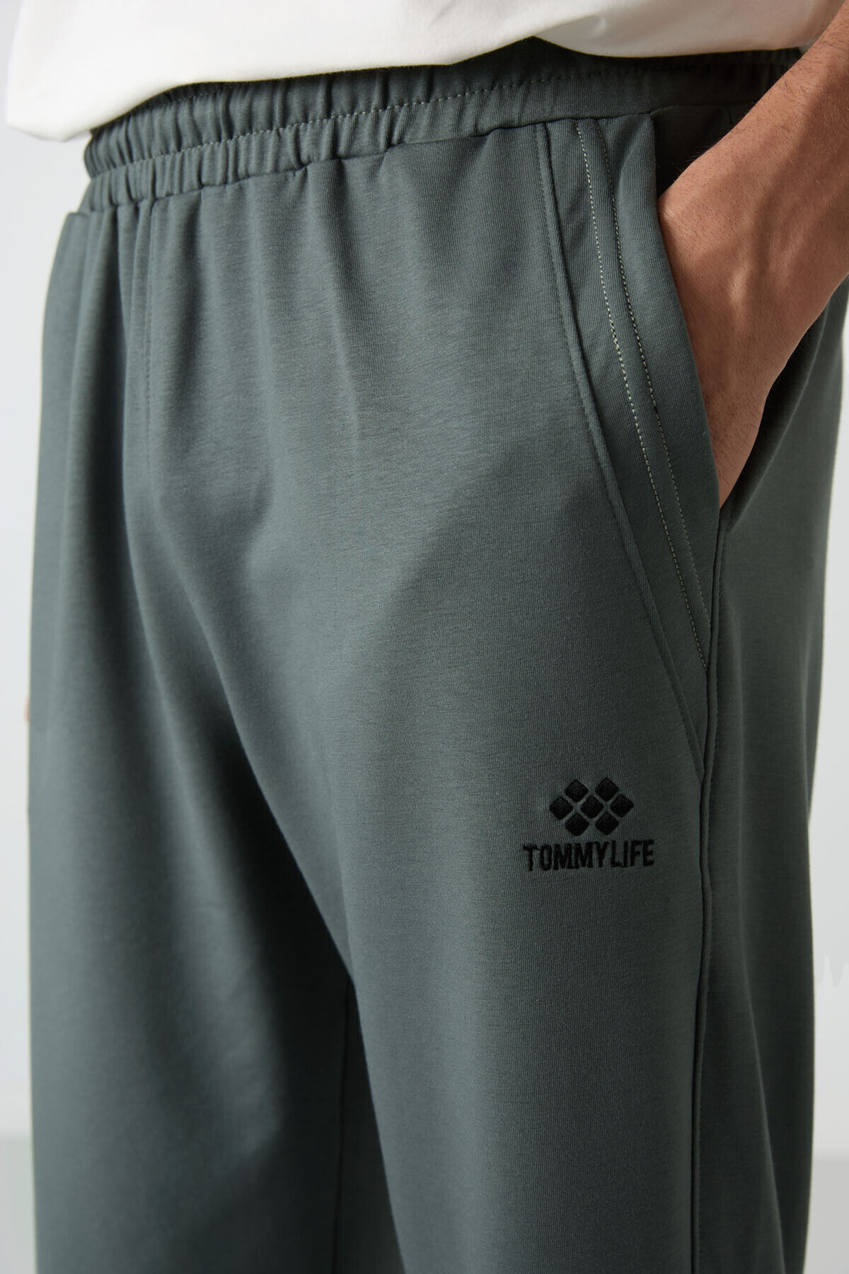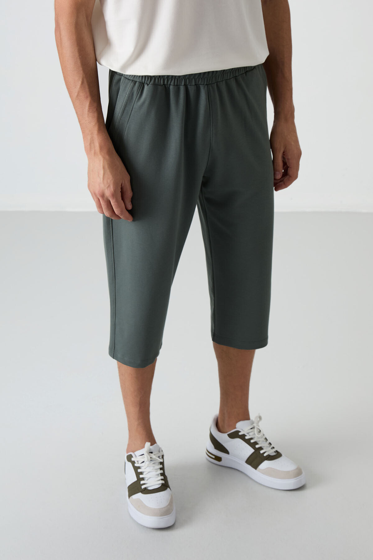 Haki Pamuklu Yumuşak Dokulu Standart Fit Nakışlı Erkek Kapri - 83102
