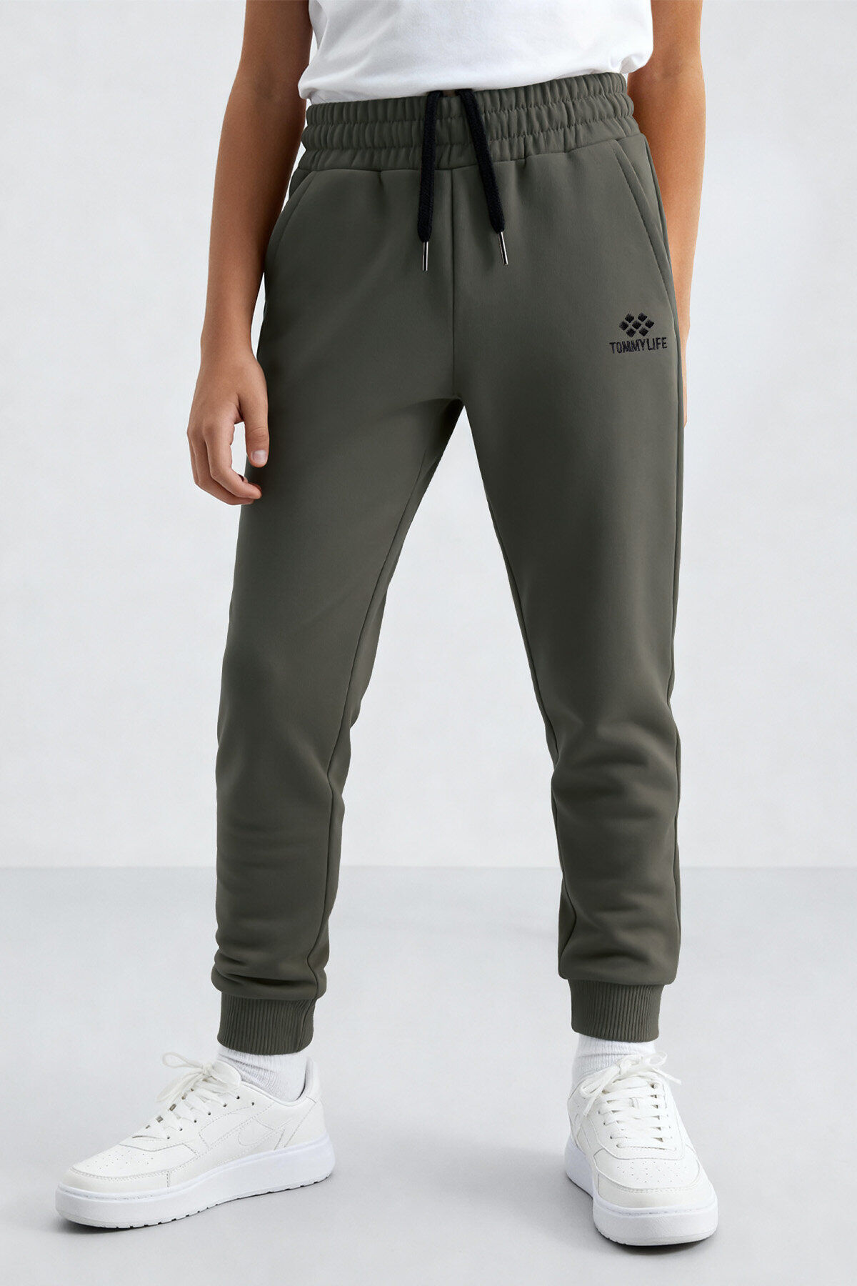 Haki Standart Fit Manşetli İnce Erkek Çocuk Eşofman Alt - 11062