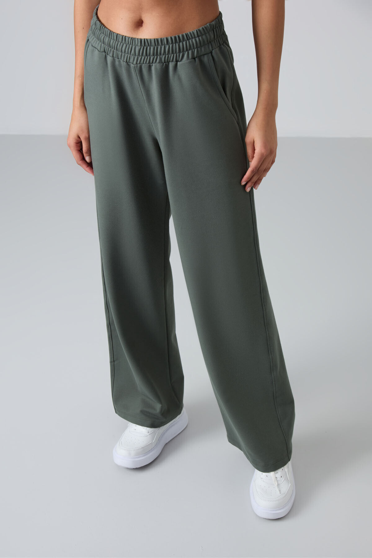 Haki Yüksek Bel Cepli Rahat Form Geniş Paça Kadın Eşofman Alt - 94567