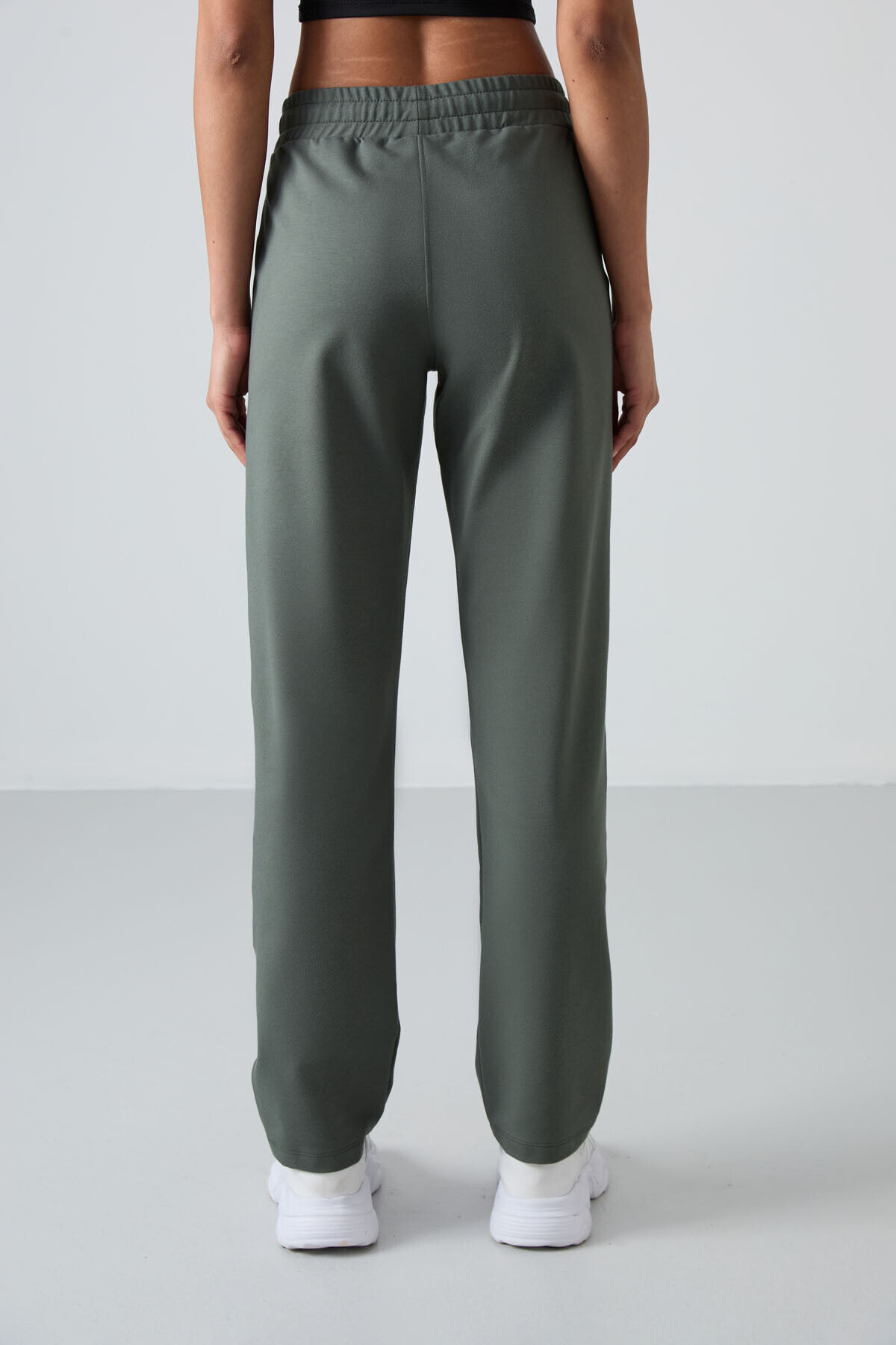 TommyLife Haki Yüksek Bel Cepli Rahat Form Klasik Paça Kadın Eşofman Alt - 94584