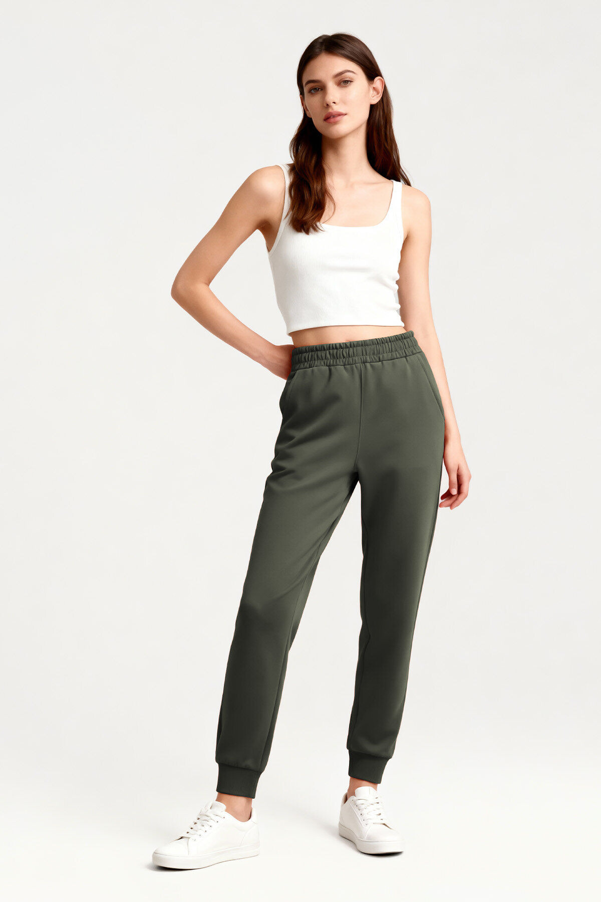 Haki Yüksek Bel Jogger Rahat Form Manşetli Kadın Eşofman Alt - 94561