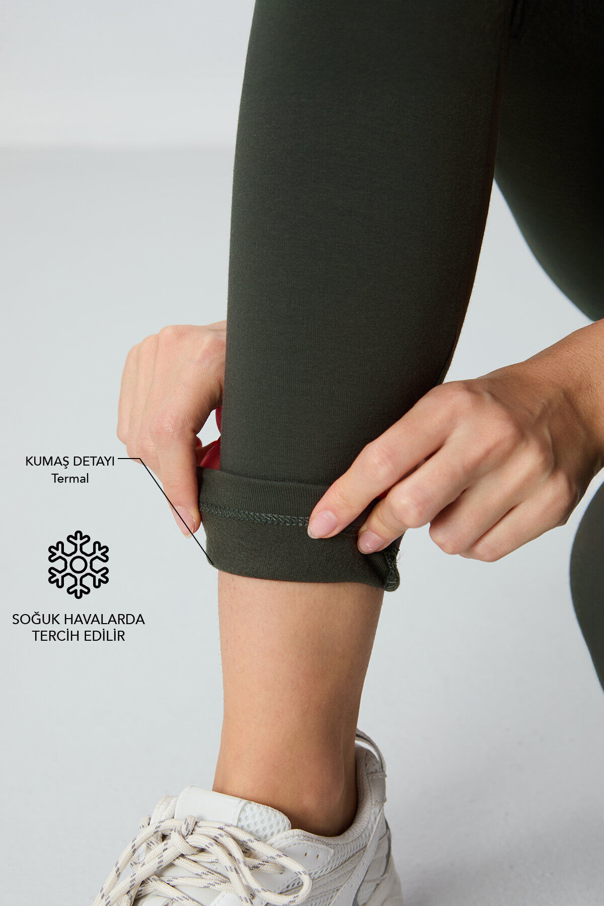 TommyLife Haki Yüksek Bel Termal Slim Fit Dar Paça Kadın Tayt - 94577