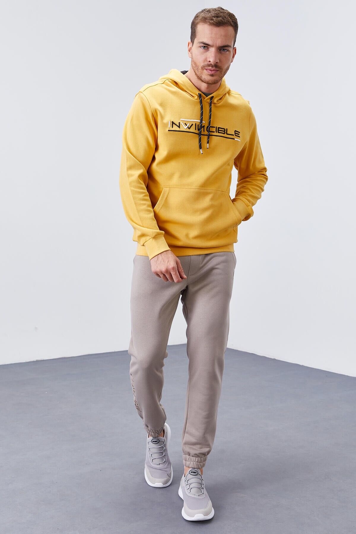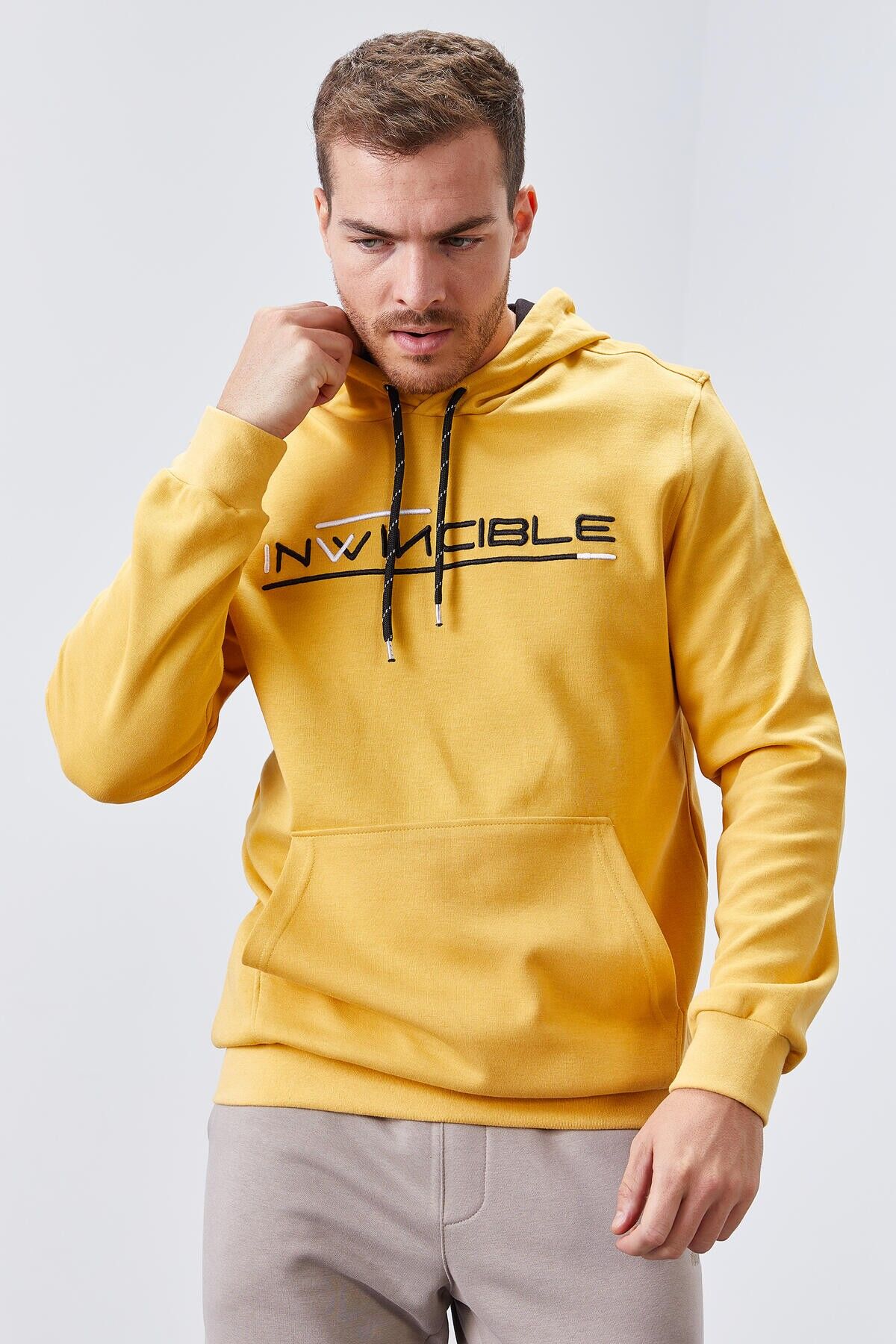 TommyLife Hardal Kanguru Cep Standart Kalıp Kapüşonlu Erkek Sweatshirt - 87883