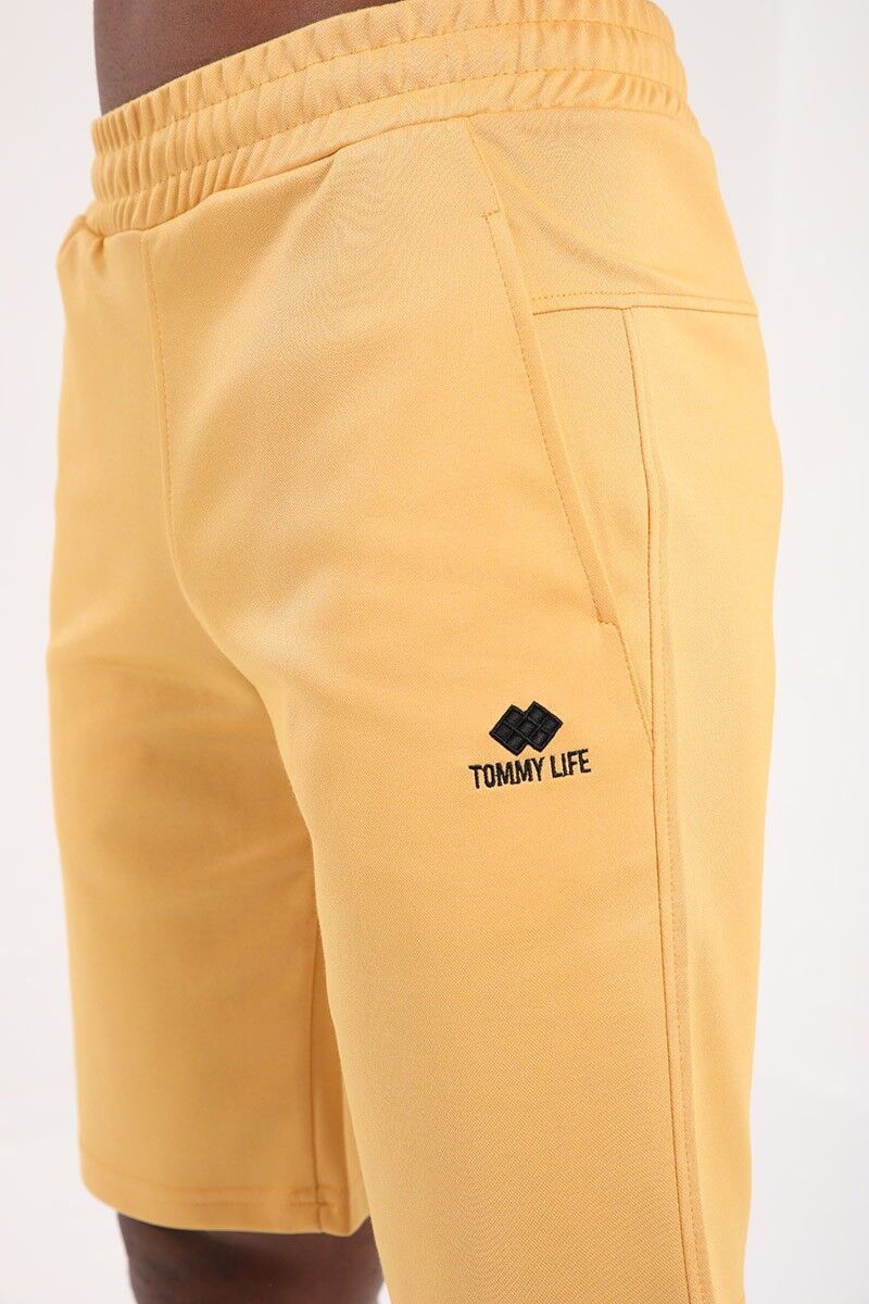 Hardal Tek Fermuar Cep Detaylı Bağcıklı Standart Kalıp Erkek Şort - 81202