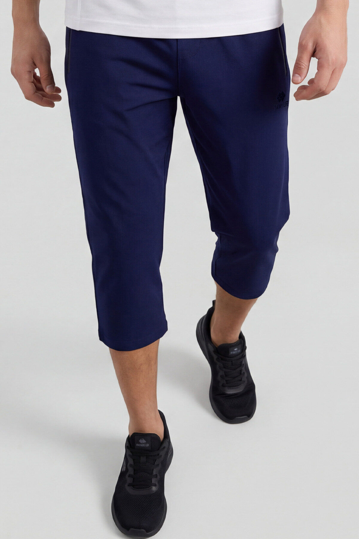 İndigo Bağcıklı Standart Kalıp Fermuar Cepli Aktif Spor Erkek Kapri - 83096