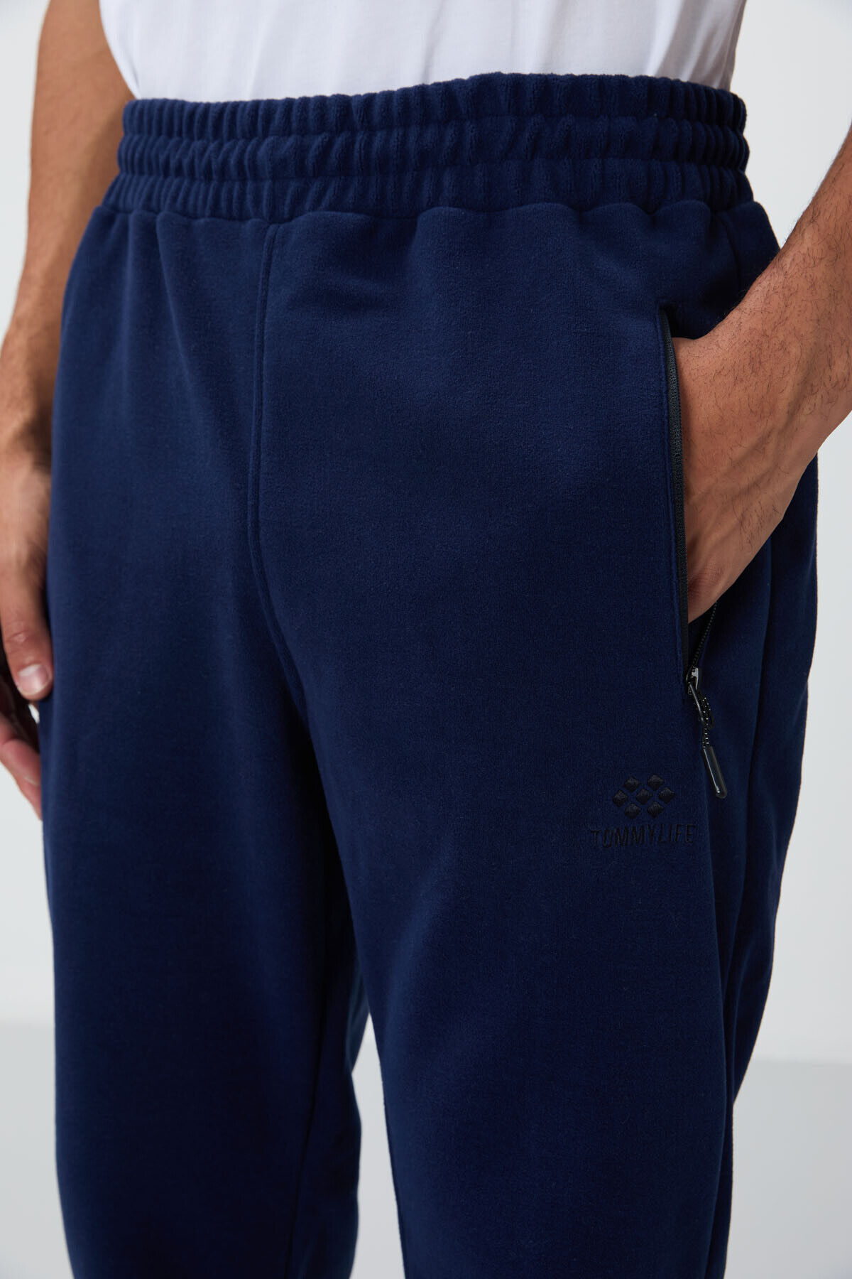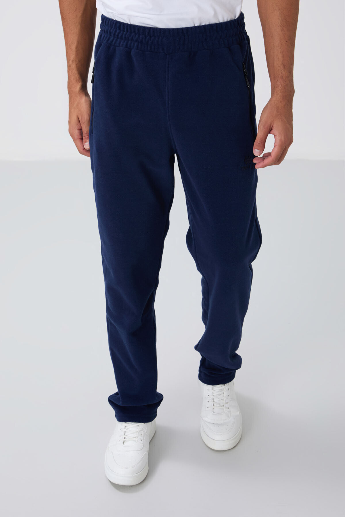 İndigo Dik Yaka Basic Fermuar Cepli Standart Kalıp Erkek Polar Eşofman Takımı - 85193