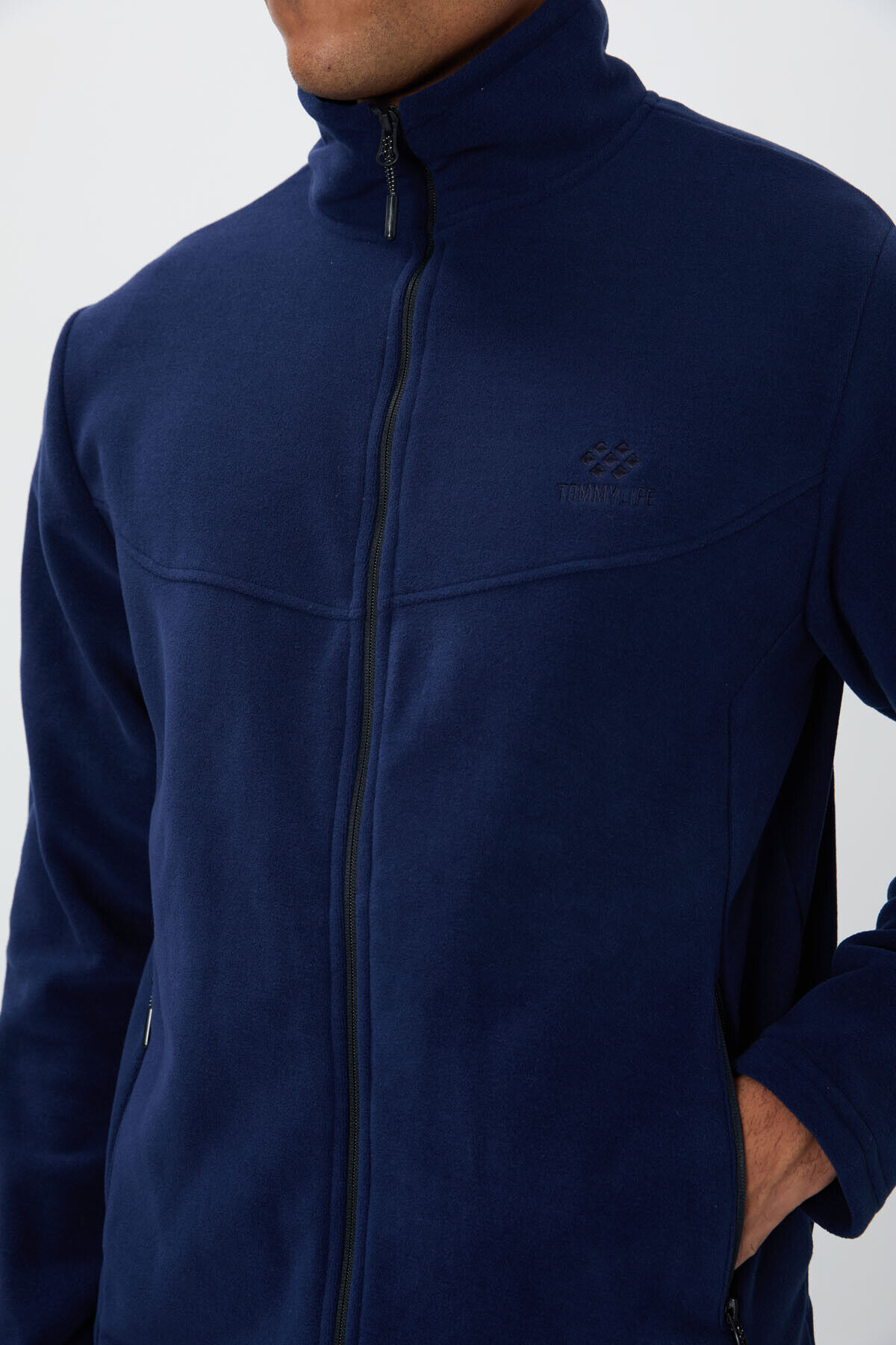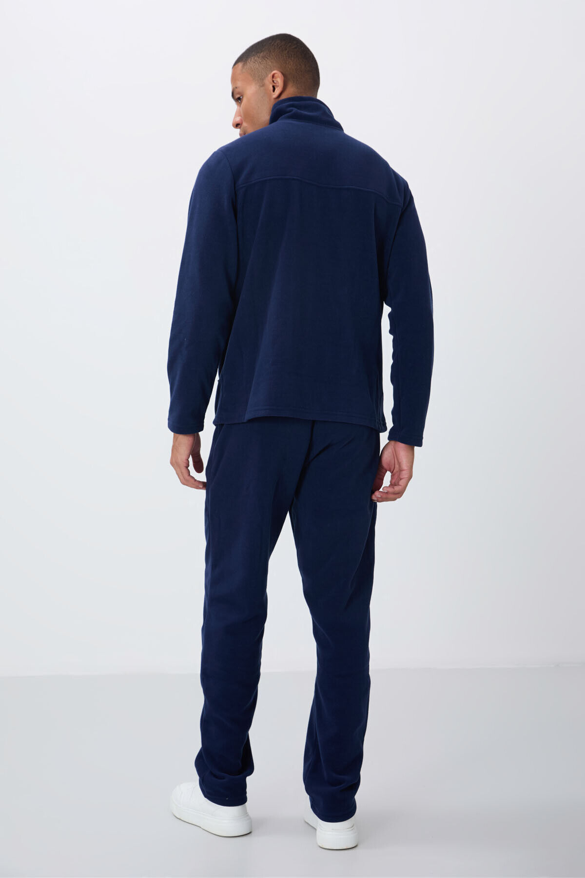 TommyLife İndigo Dik Yaka Basic Fermuar Cepli Standart Kalıp Erkek Polar Eşofman Takımı - 85193