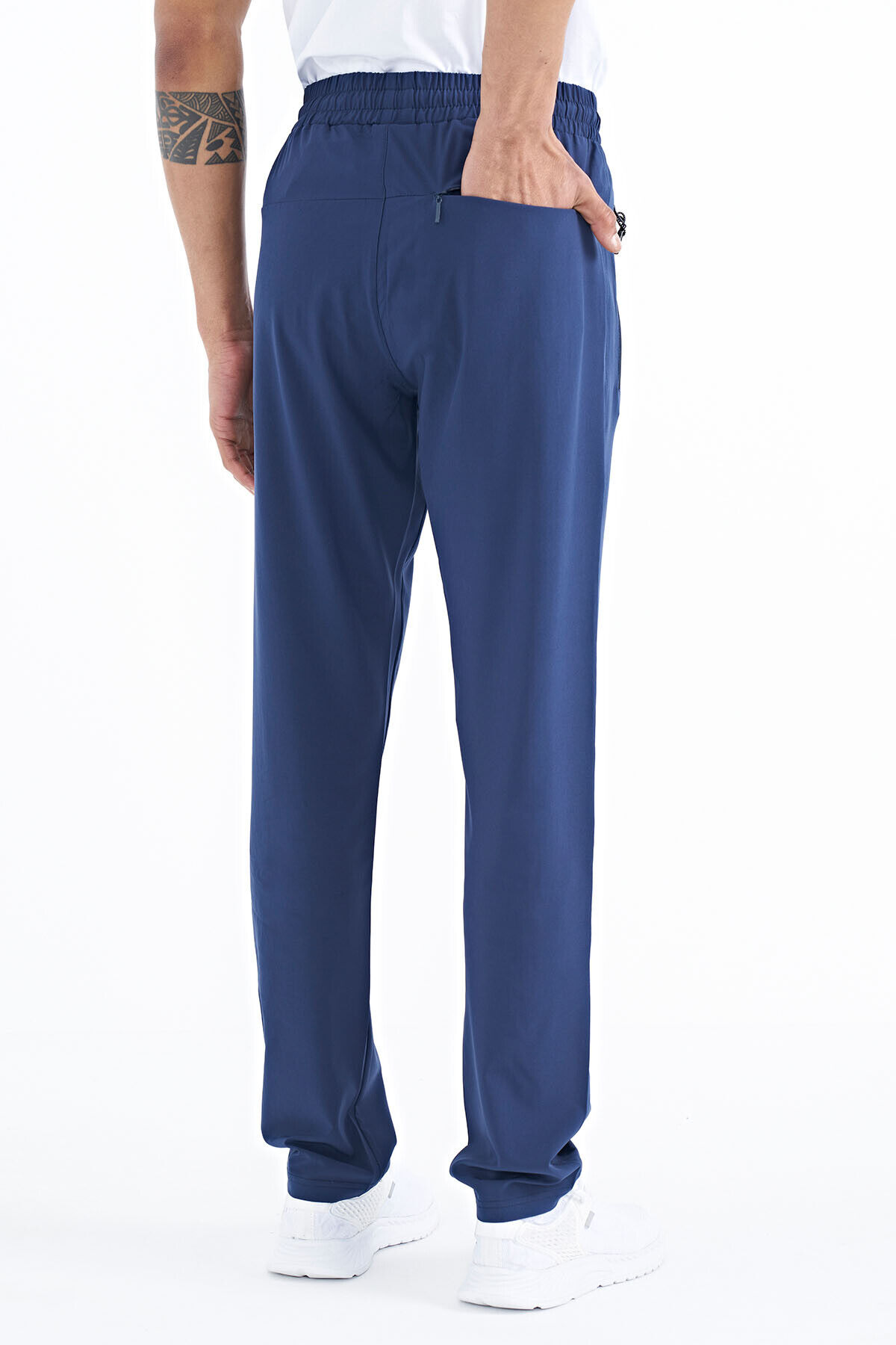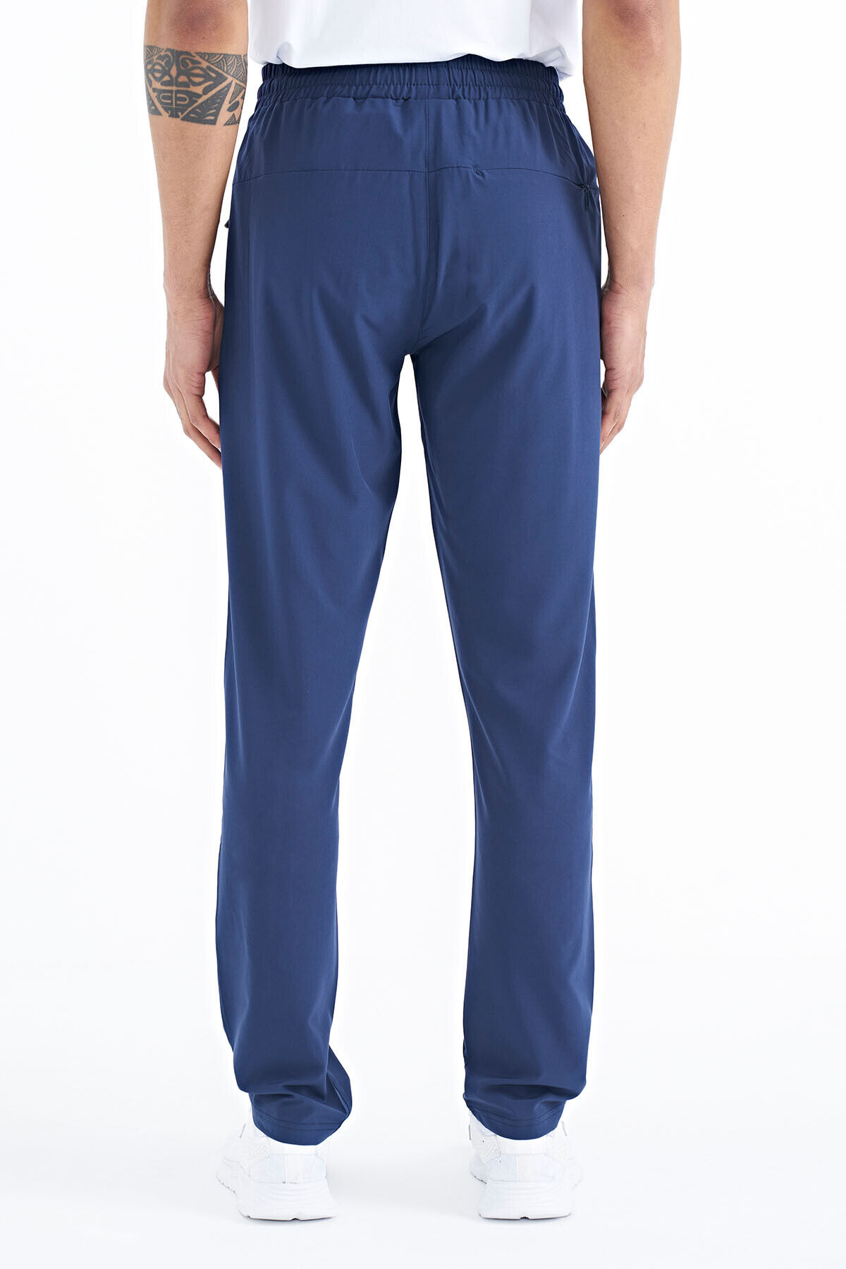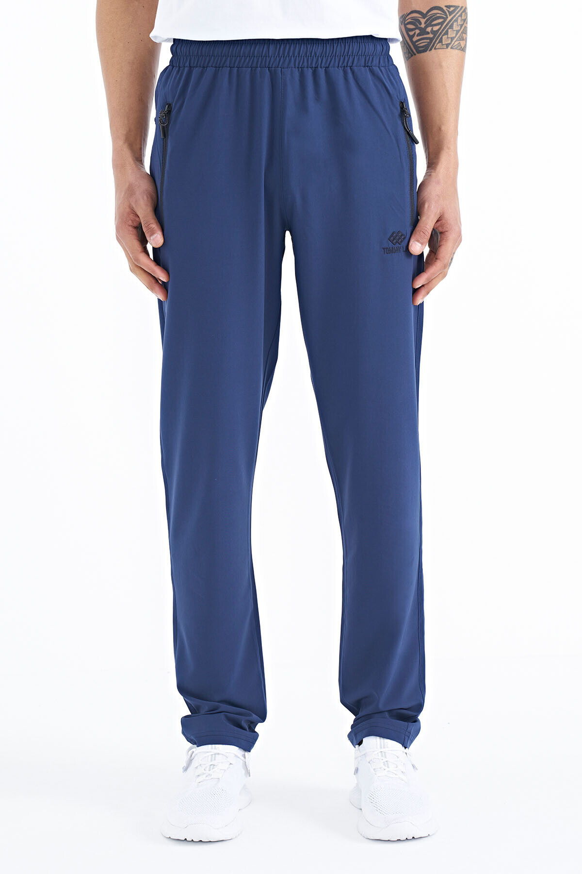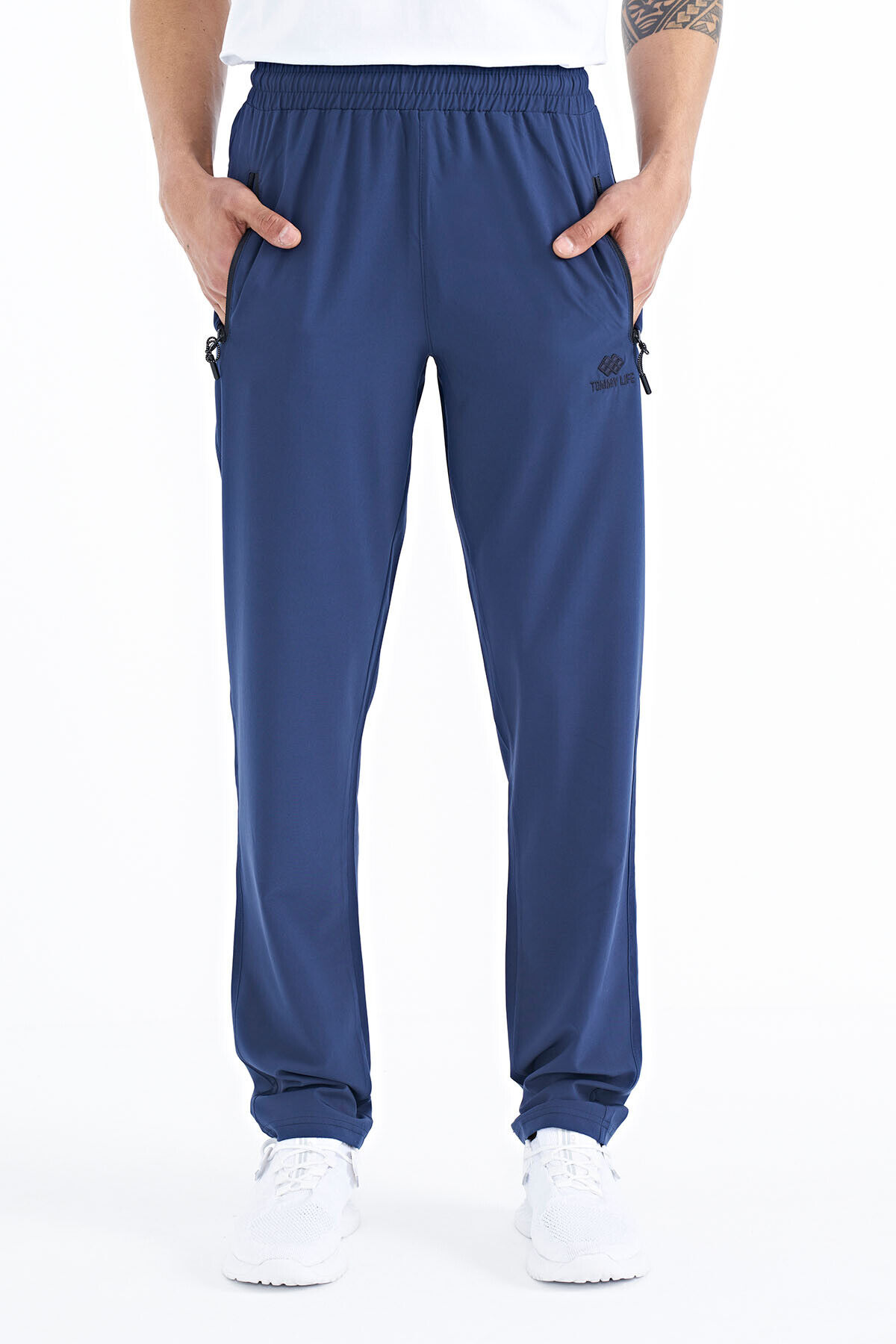 TommyLife İndigo Erkek Fermuarlı Üç Cepli Standart Kalıp Klasik Paça Eşofman Alt - 84768