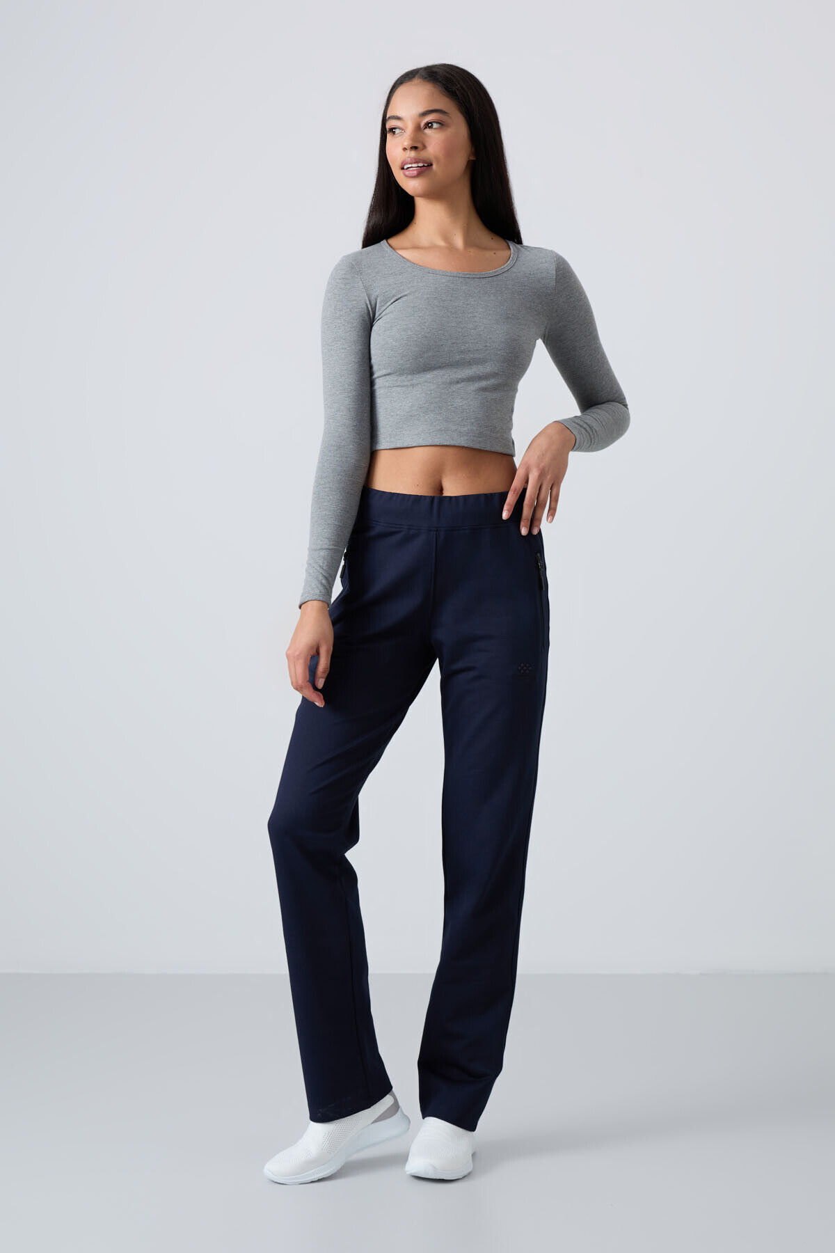 TommyLife İndigo Fermuar Cepli Rahat Form Klasik Paça Kadın Eşofman Alt - 94195