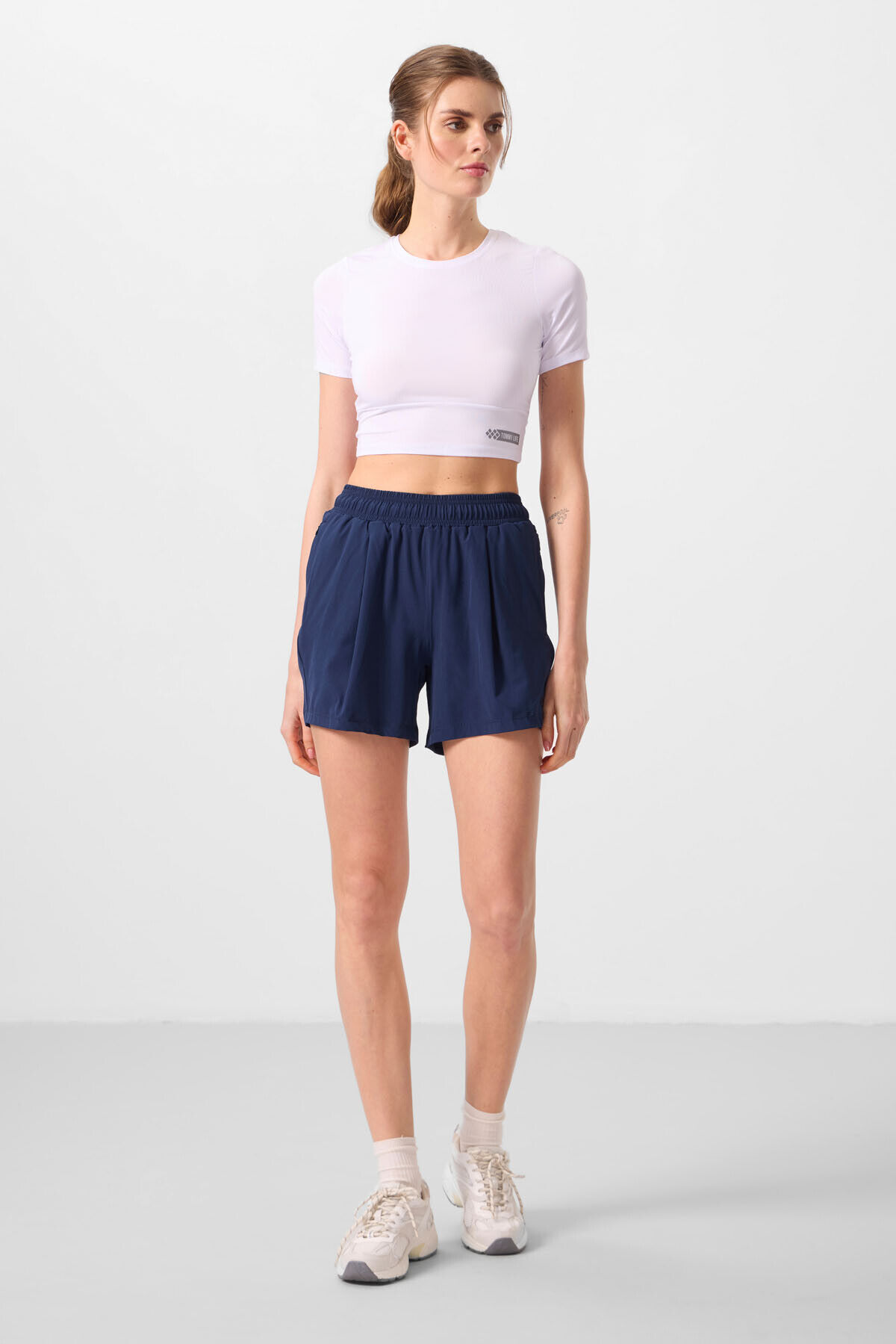 TommyLife İndigo Gizli Cep Fermuarlı Rahat Form Kadın Şort - 91014