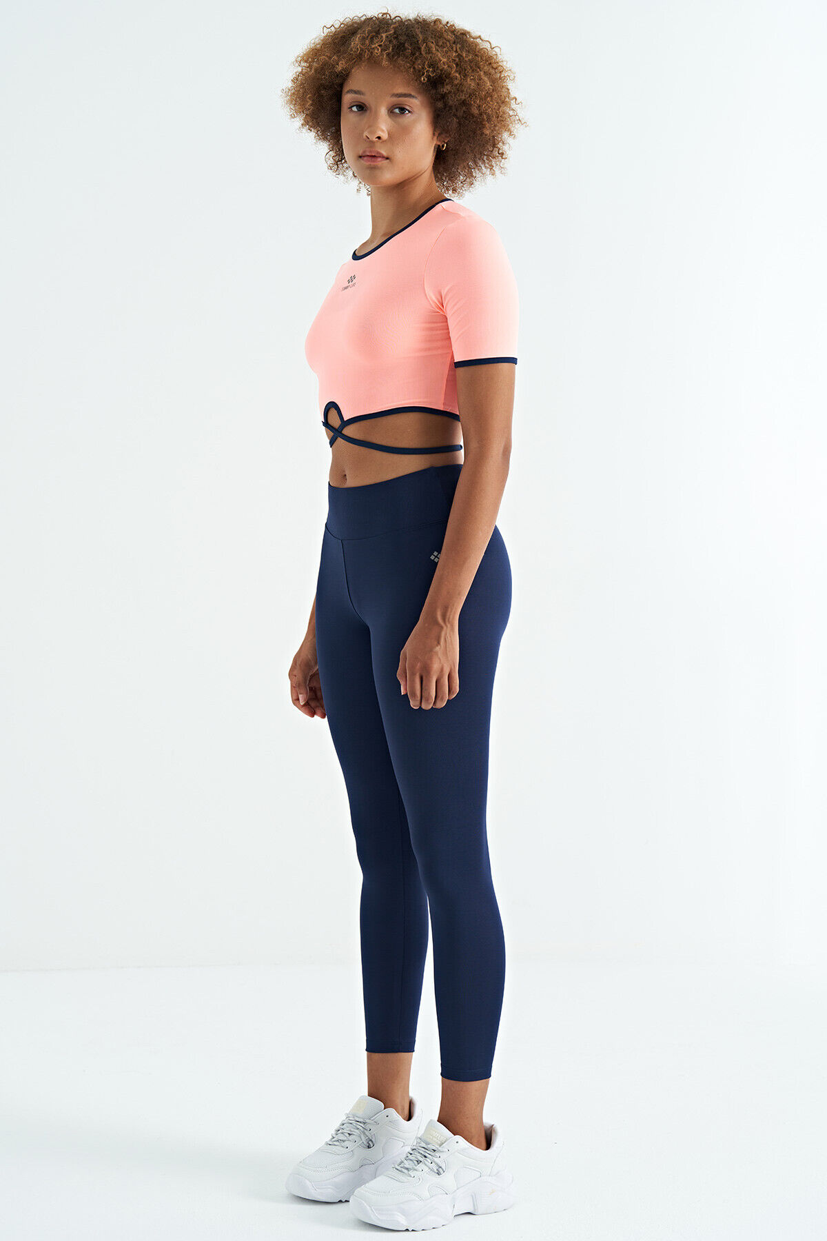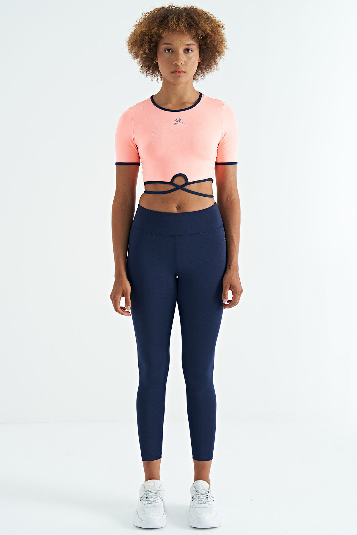 TommyLife İndigo Logo Baskı Detaylı Yüksek Bel Dalgıç Kumaş Slim Fit Kadın Tayt - 94627