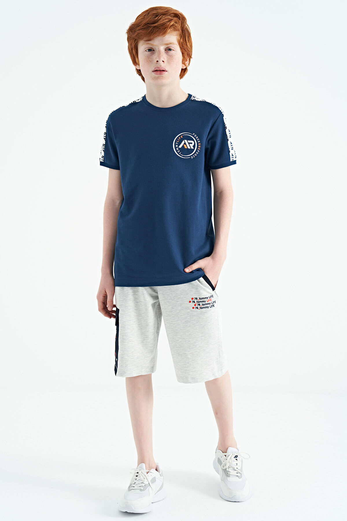 TommyLife İndigo Omuz Baskı Detaylı Standart Kalıp O Yaka Erkek Çocuk T-Shirt - 11121
