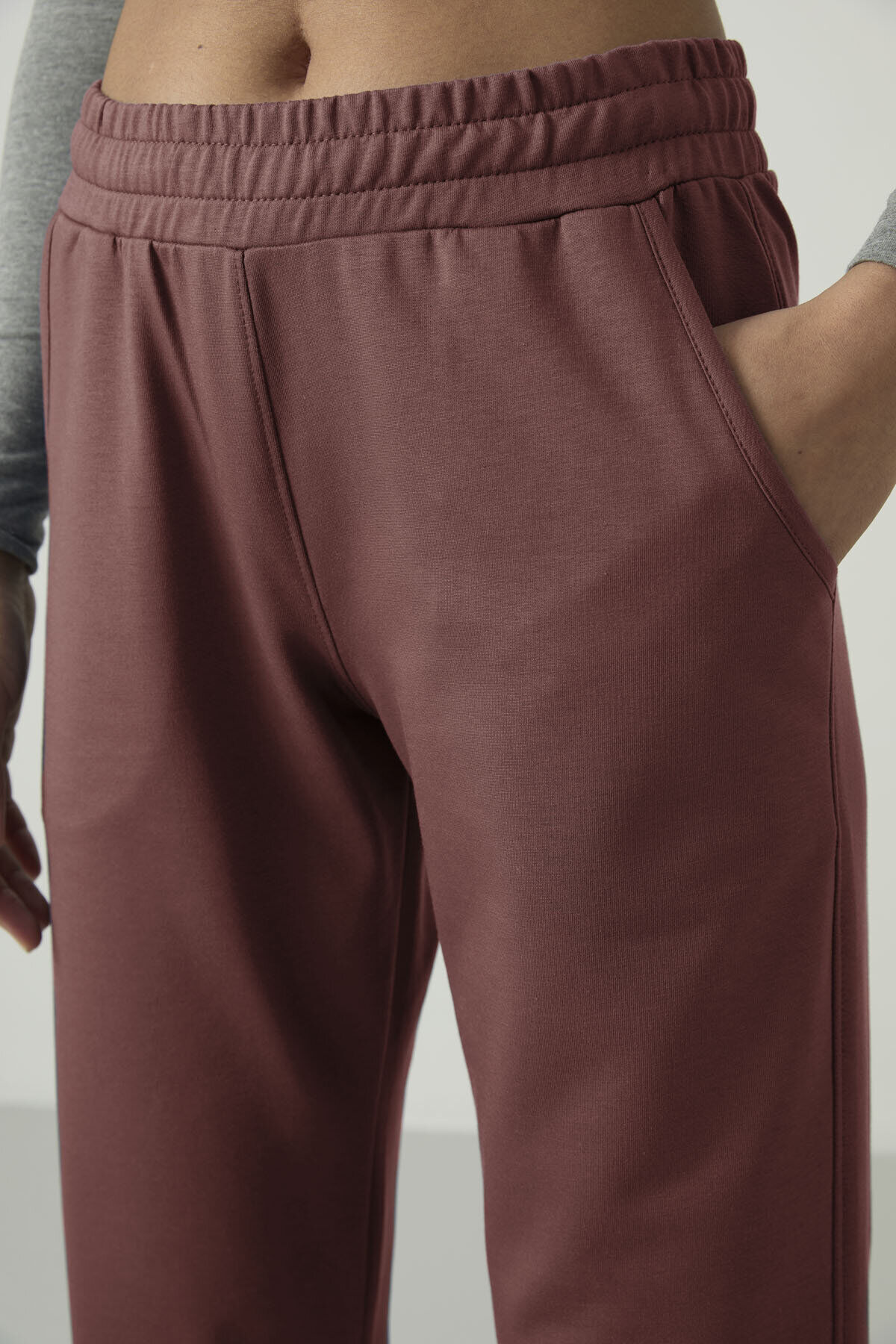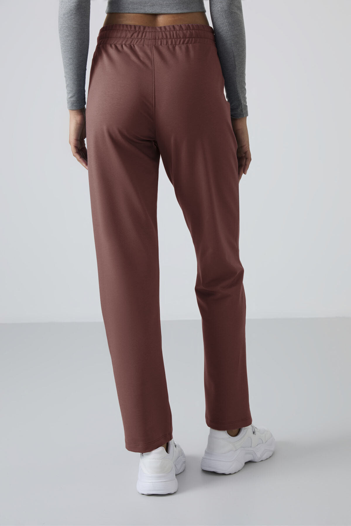 Kahverengi Yüksek Bel Cepli Rahat Form Klasik Paça Kadın Eşofman Alt - 94584