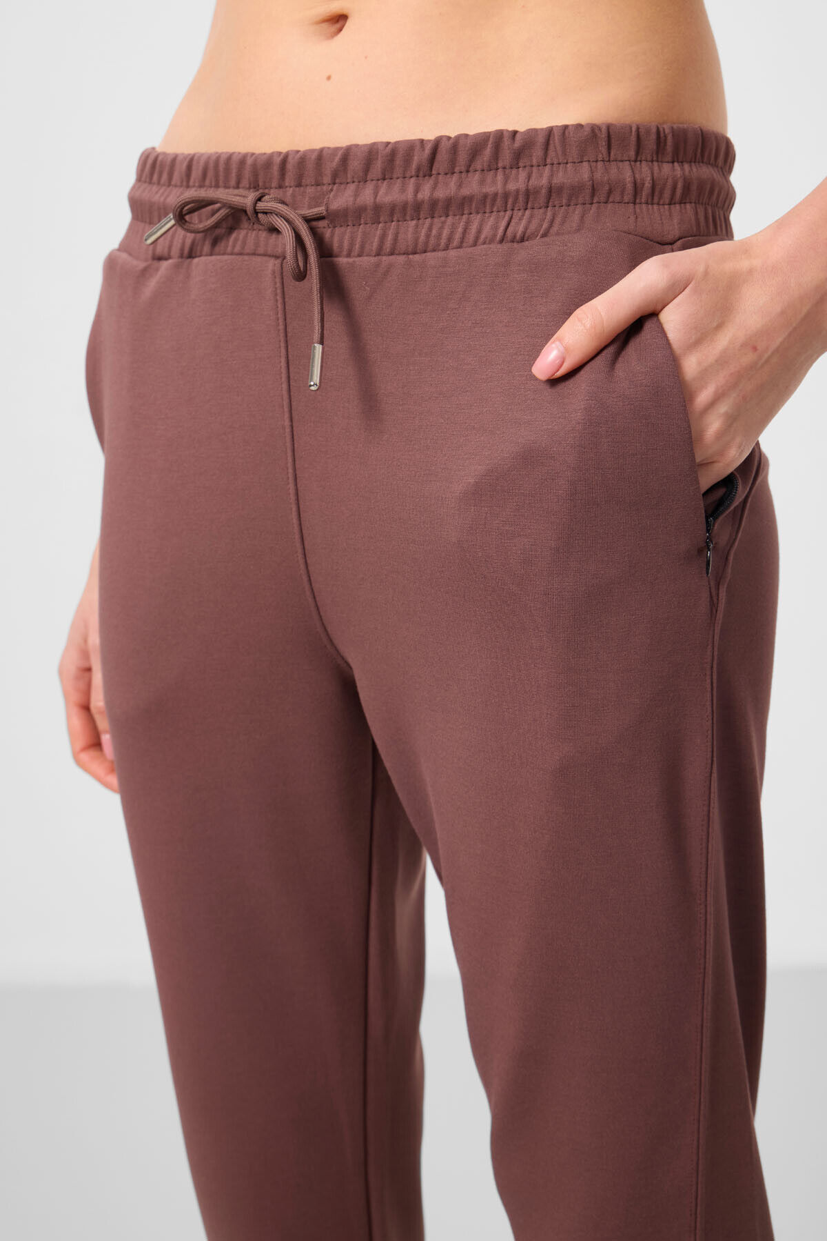 TommyLife Kahverengi Yumuşak Dokulu Gizli Fermuarlı Dar Paça Kadın Pantolon - 94668
