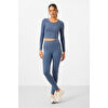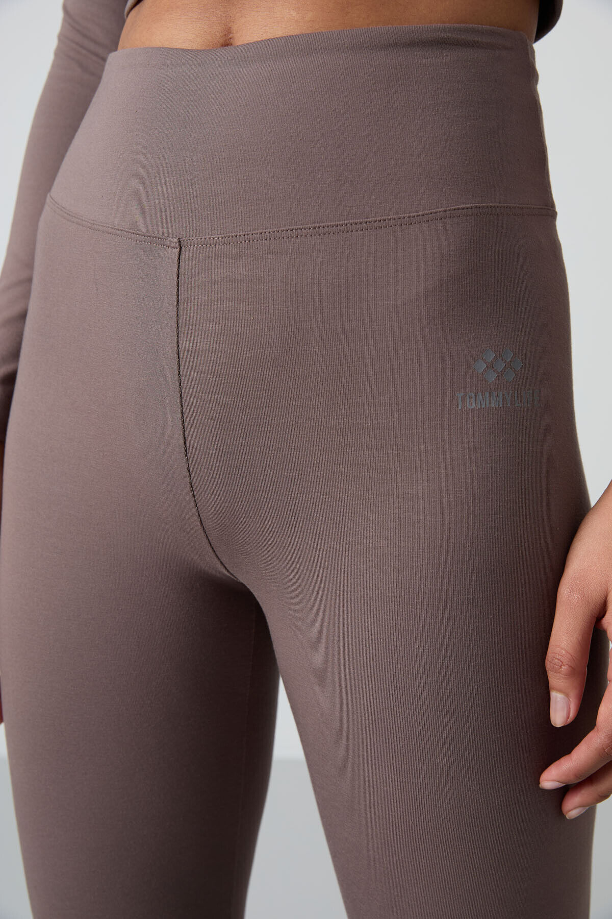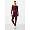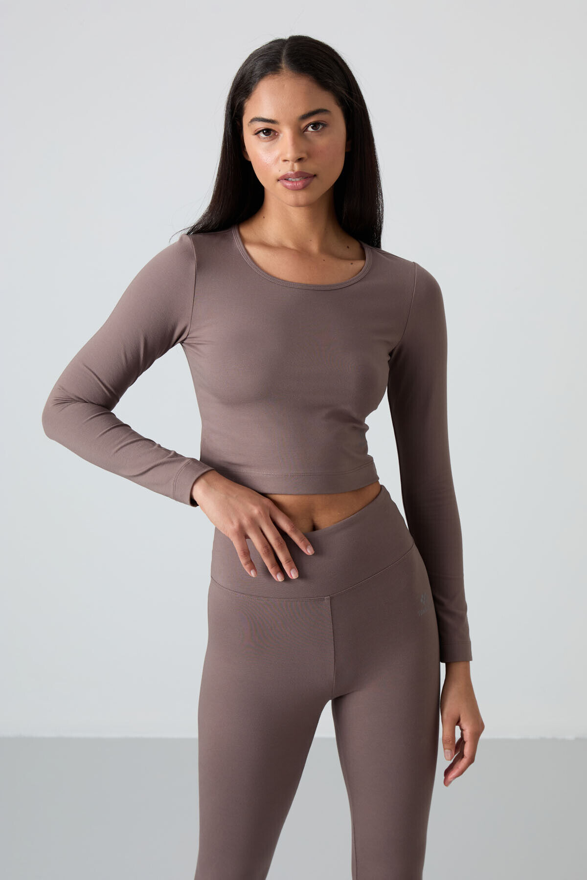 TommyLife Kahvrengi Yüksek Bel Uzun Kollu Slim Fit Crop Top Kadın Tayt Takım - 95286