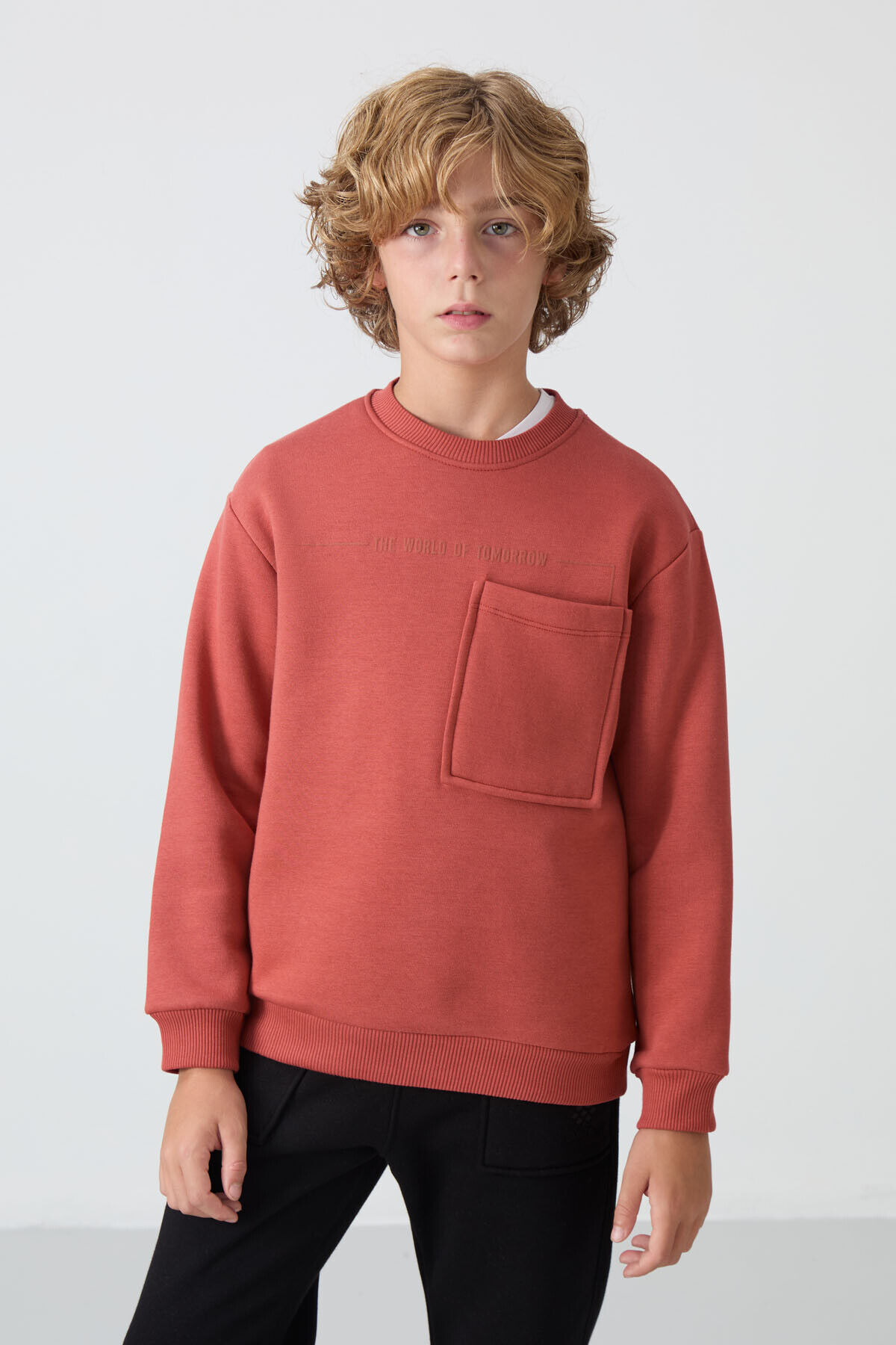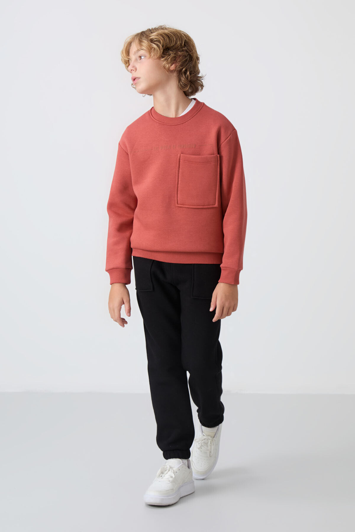TommyLife Kiremit-Siyah Pamuklu Kalın İçi Tüylü Standart Fit Baskılı Erkek Çocuk Eşofman Takım - 11257