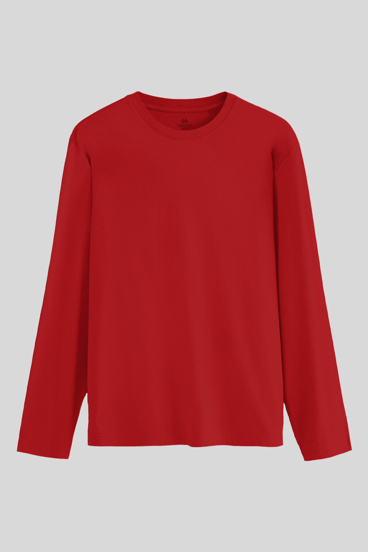 TommyLife Kırmızı Standart Fit Basic O Yaka Uzun Kollu İnce Erkek T-Shirt - 87997
