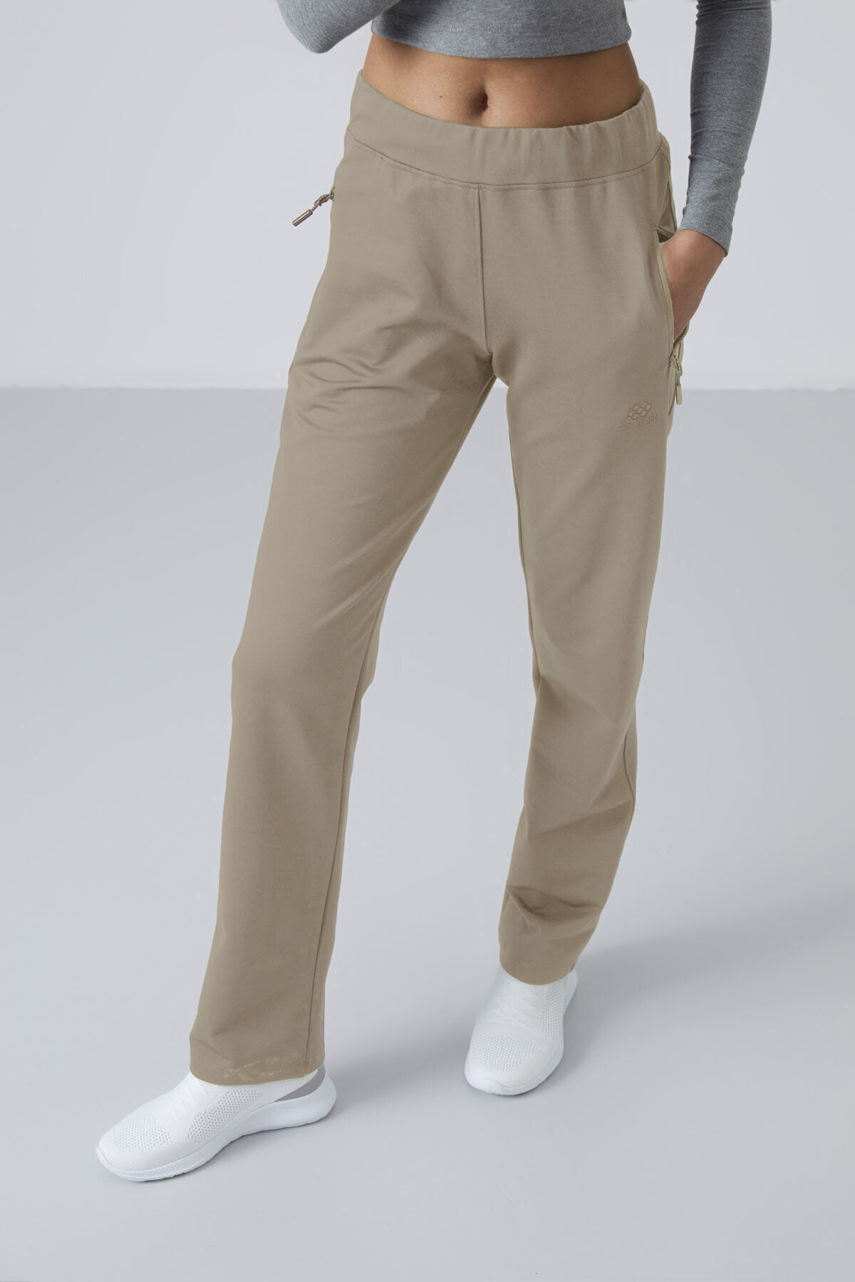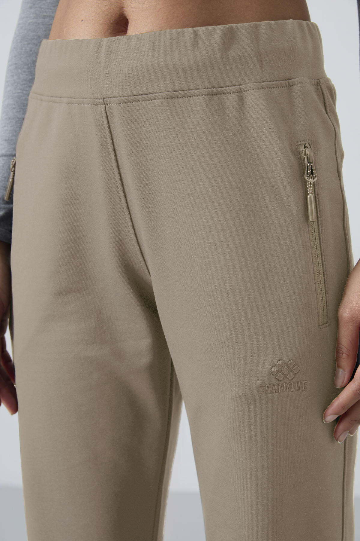 TommyLife Koyu Bej Fermuar Cepli Rahat Form Klasik Paça Kadın Eşofman Alt - 94195