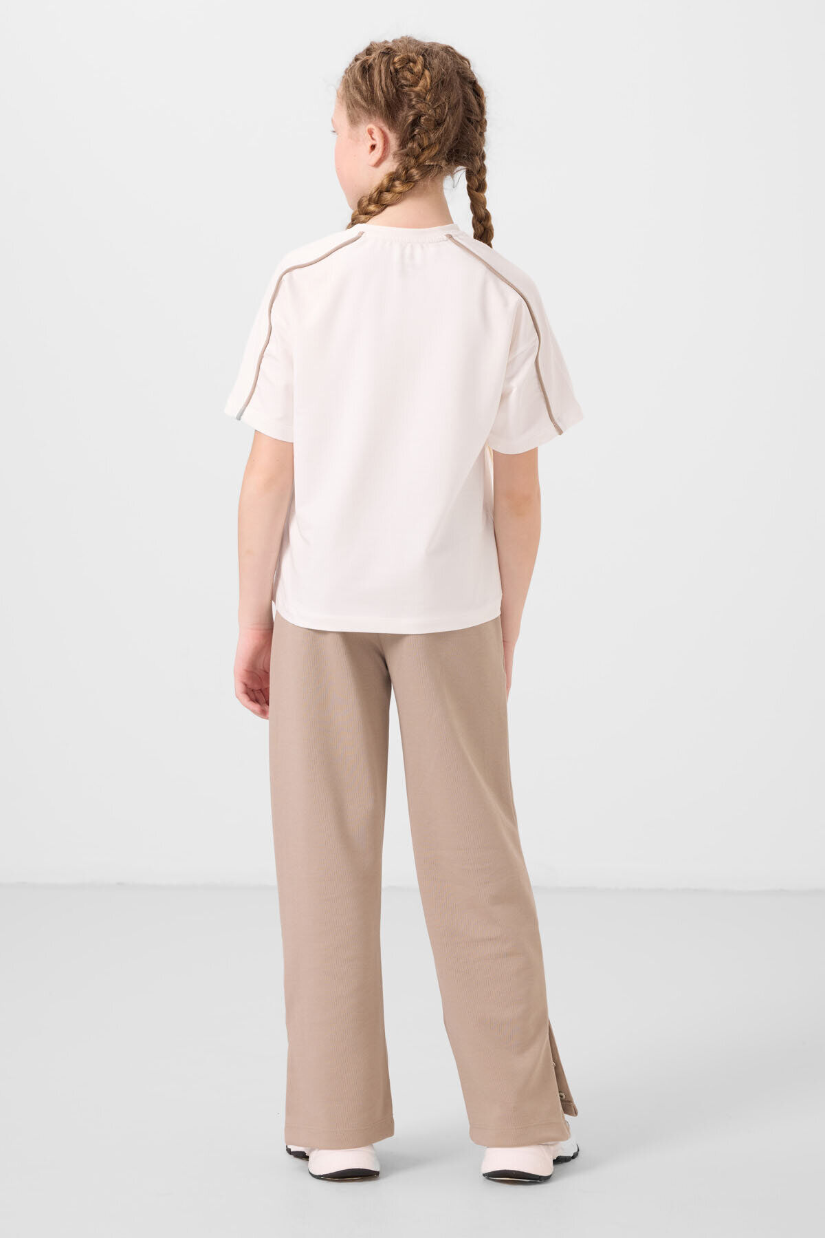 TommyLife Koyu Bej Geniş Paça Çıt Çıt Detaylı Kız Çocuk Palazzo Pantolon - 75199