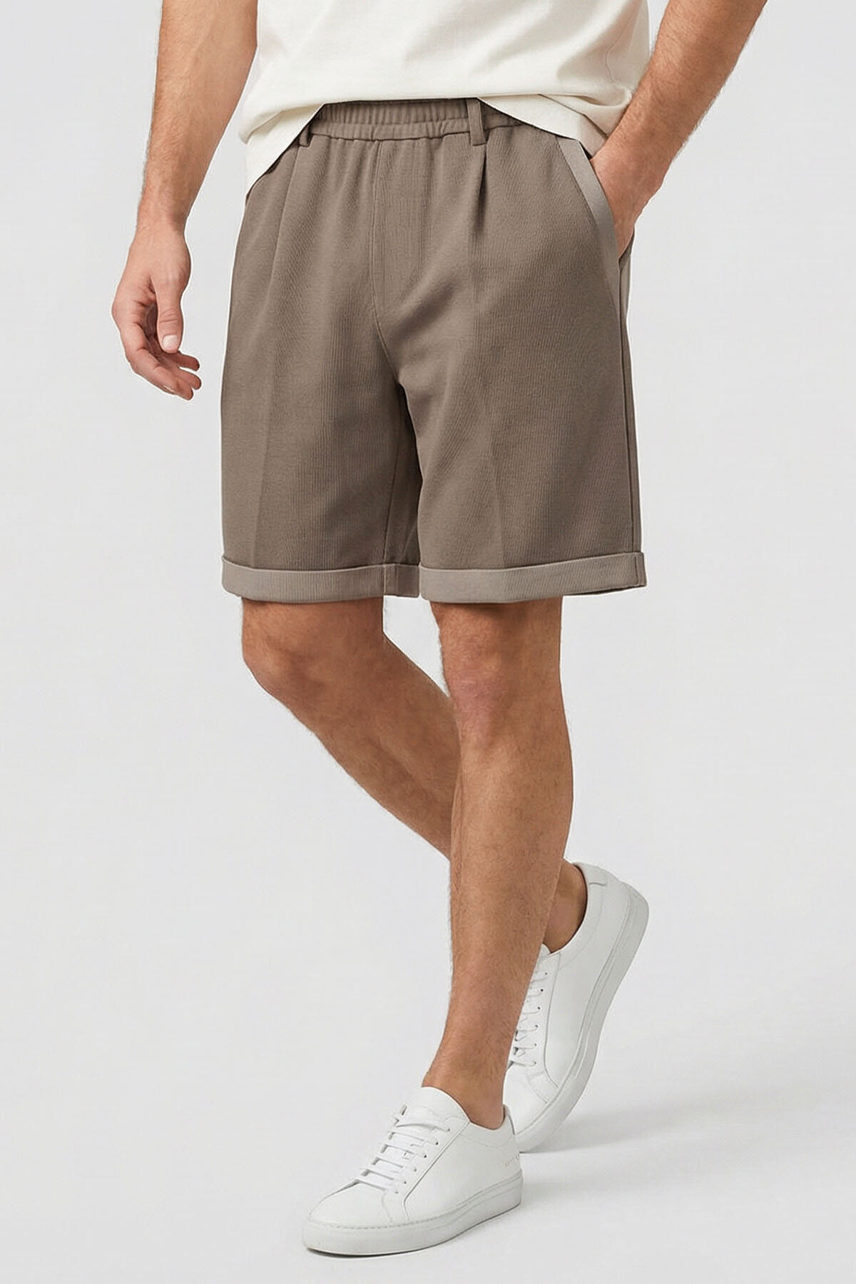 Koyu Bej Oversize Fit Basic Kemer Detaylı Erkek Şort - 81285