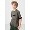 TommyLife Koyu Bej Pamuklu Yumuşak Dokulu Oversize Cep Detaylı Erkek Çocuk T-Shirt - 11295