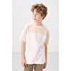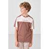 TommyLife Koyu Bej Pamuklu Yumuşak Dokulu Oversize Fit Nakışlı Erkek Çocuk T-Shirt - 11290