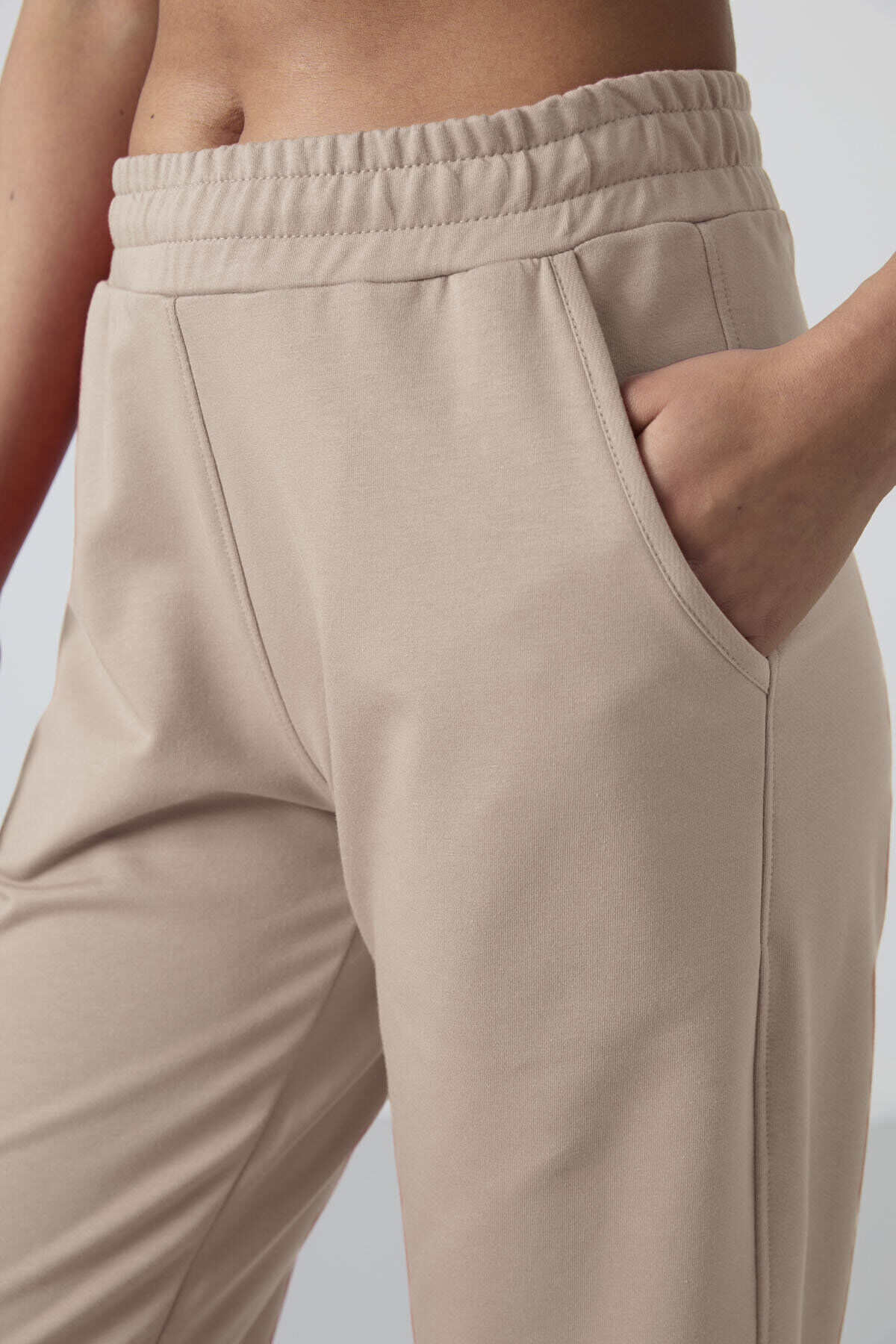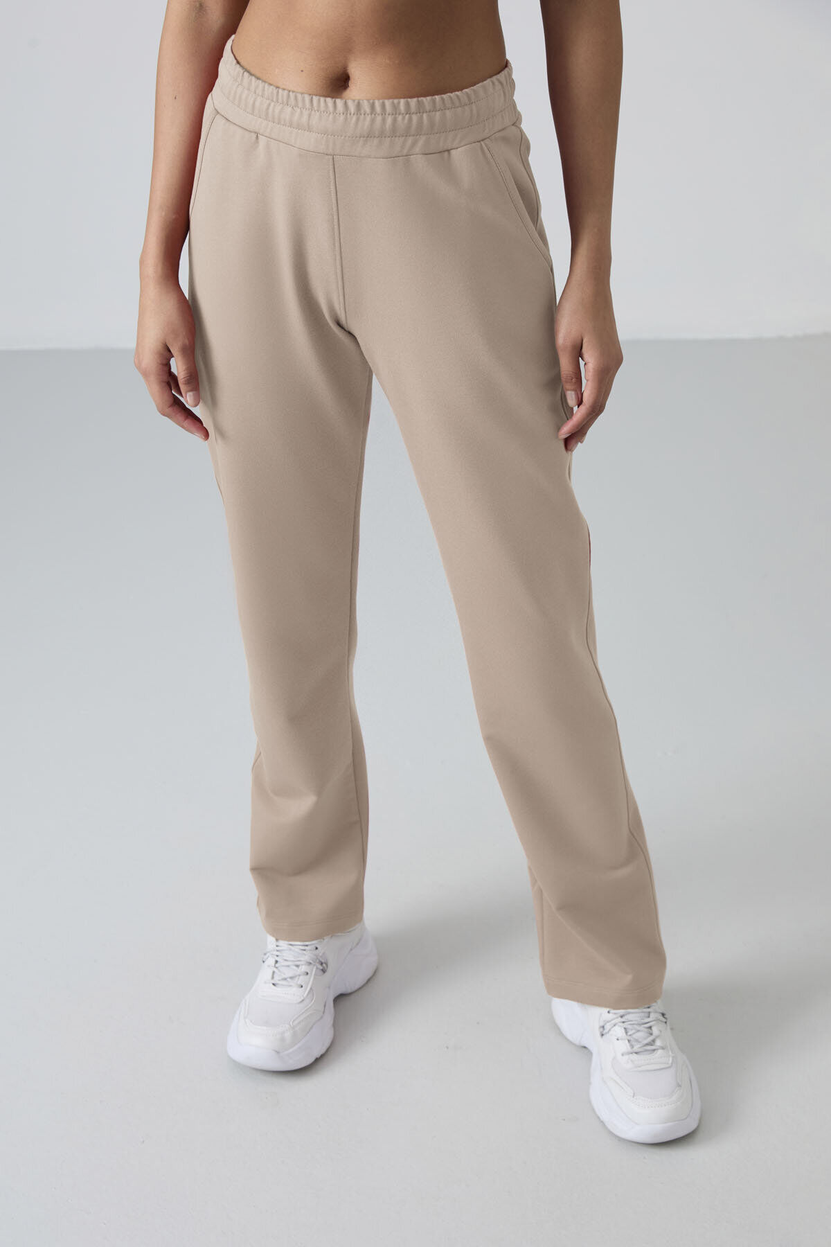 Koyu Bej Yüksek Bel Cepli Rahat Form Klasik Paça Kadın Eşofman Alt - 94584
