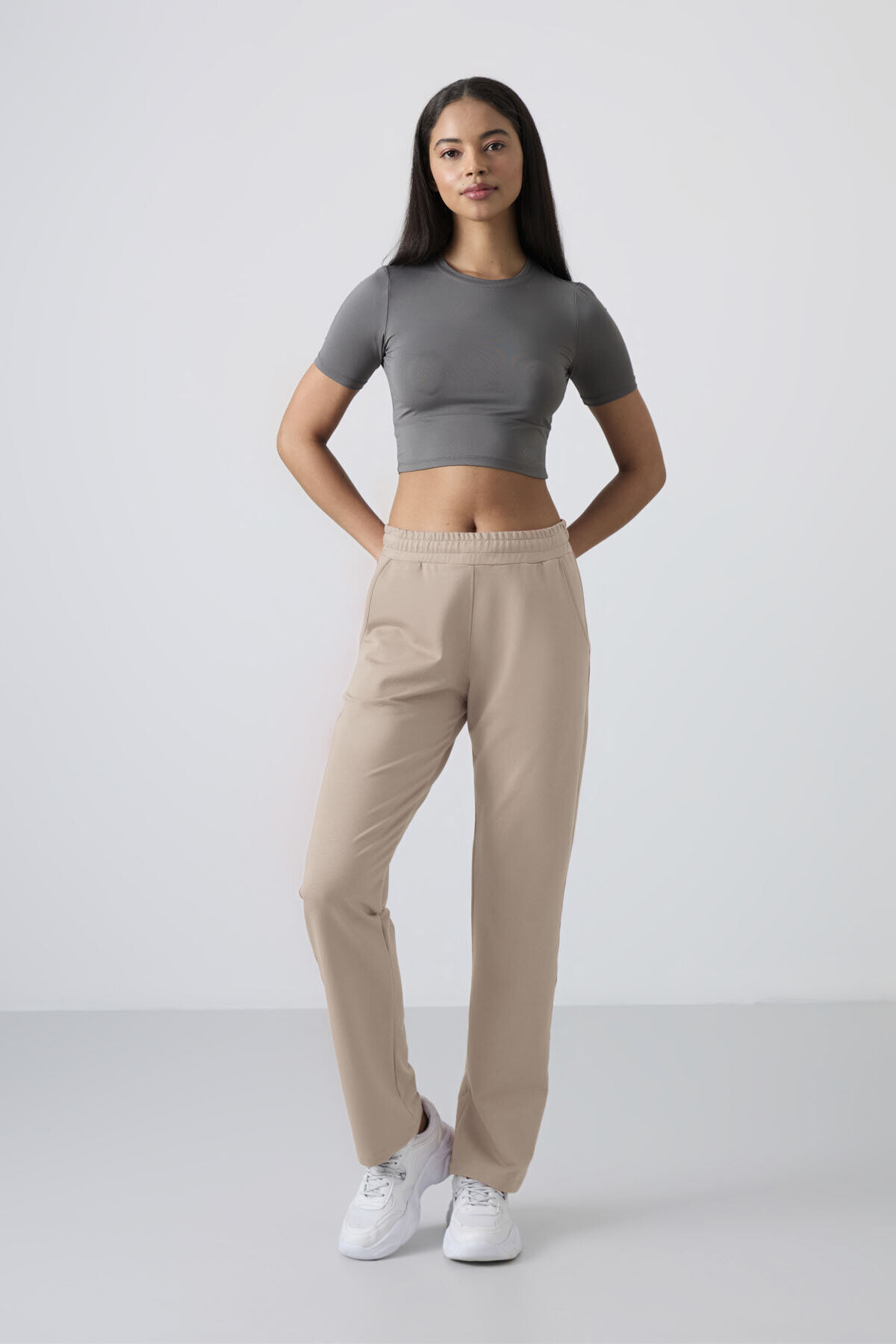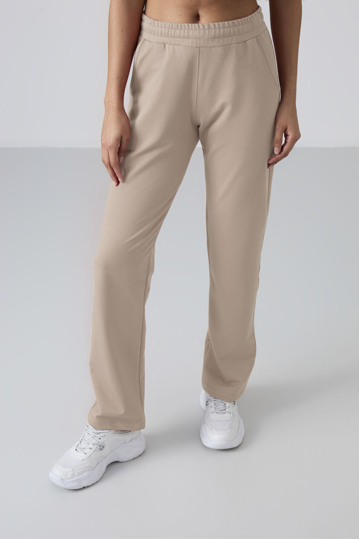 Koyu Bej Yüksek Bel Cepli Rahat Form Klasik Paça Kadın Eşofman Alt - 94584