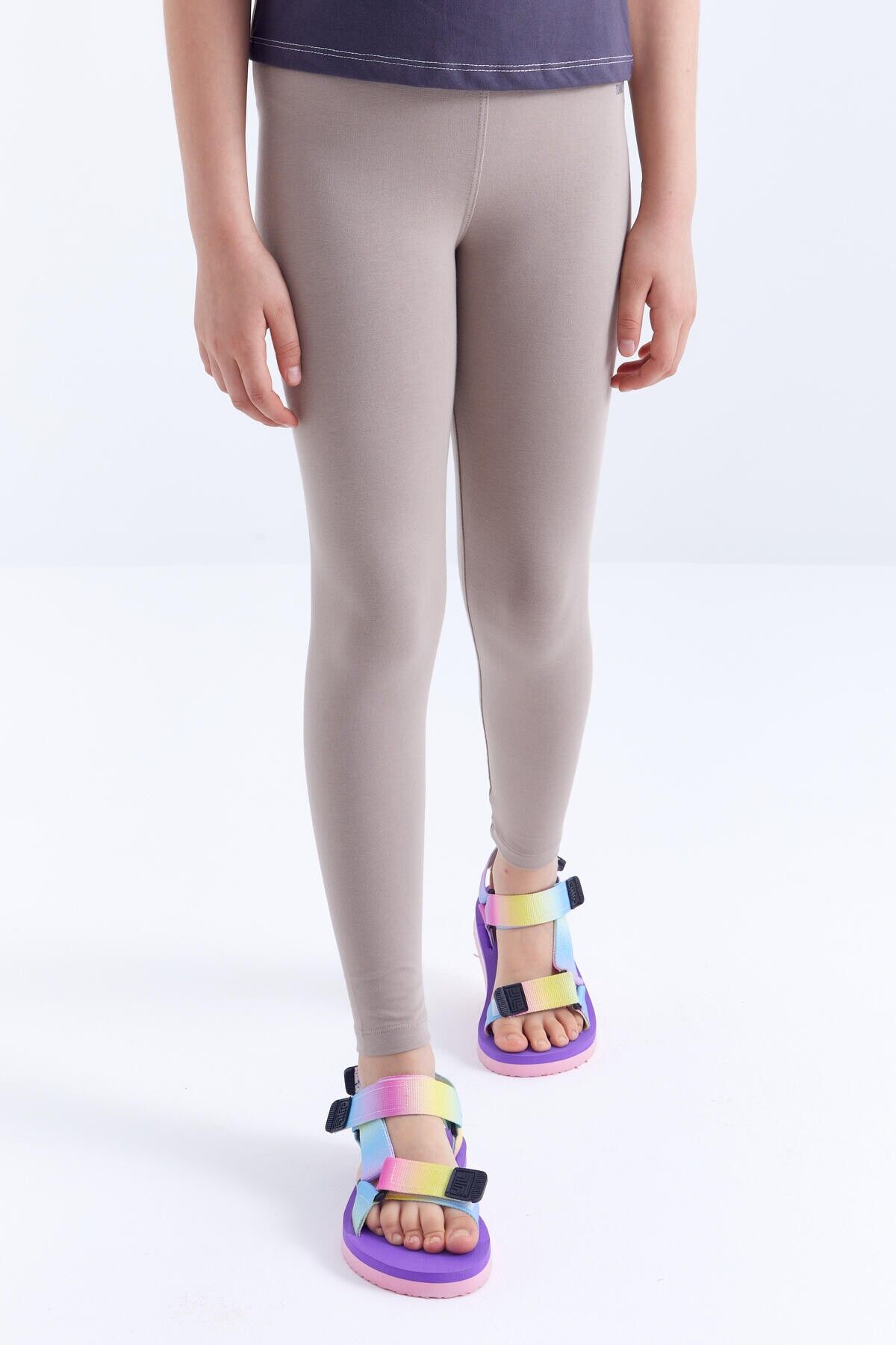 TommyLife Koyu Bej Yüksek Bel Dar Paça Kız Çocuk Tayt - 75047