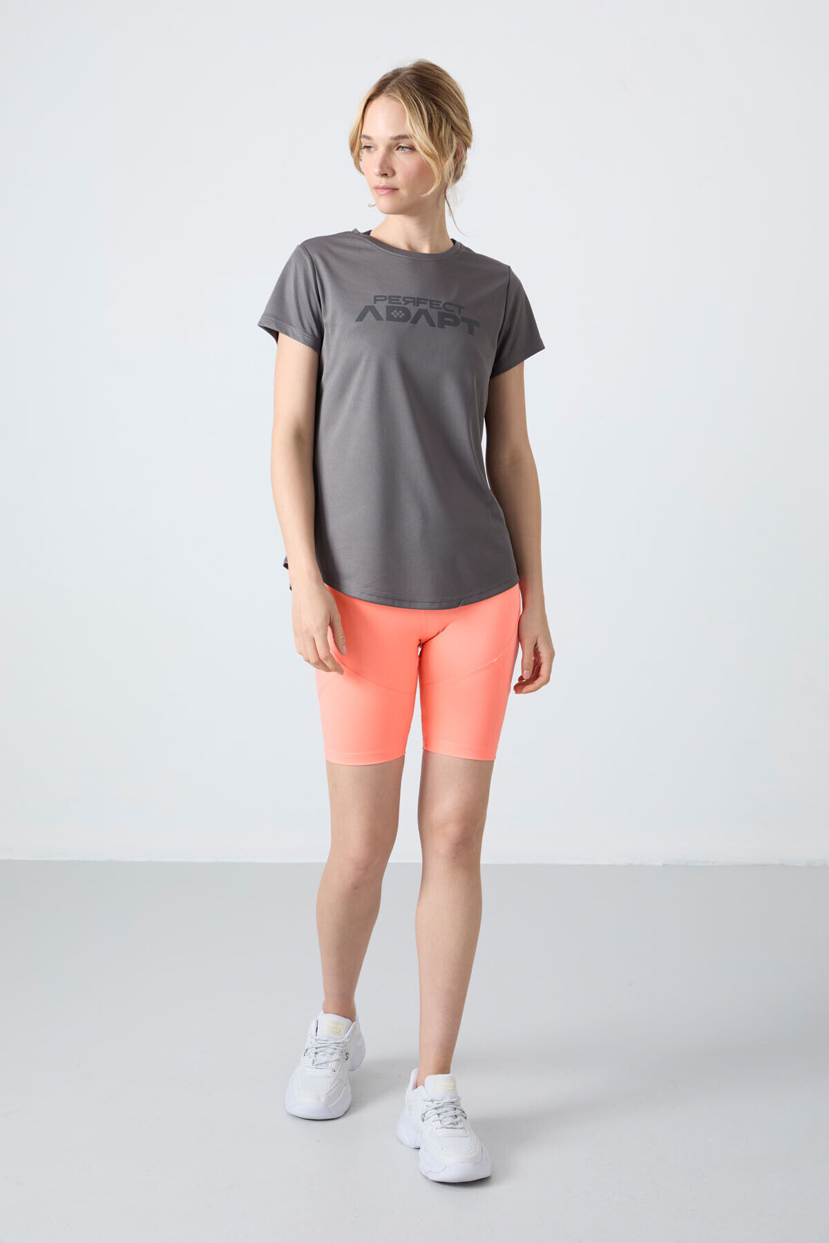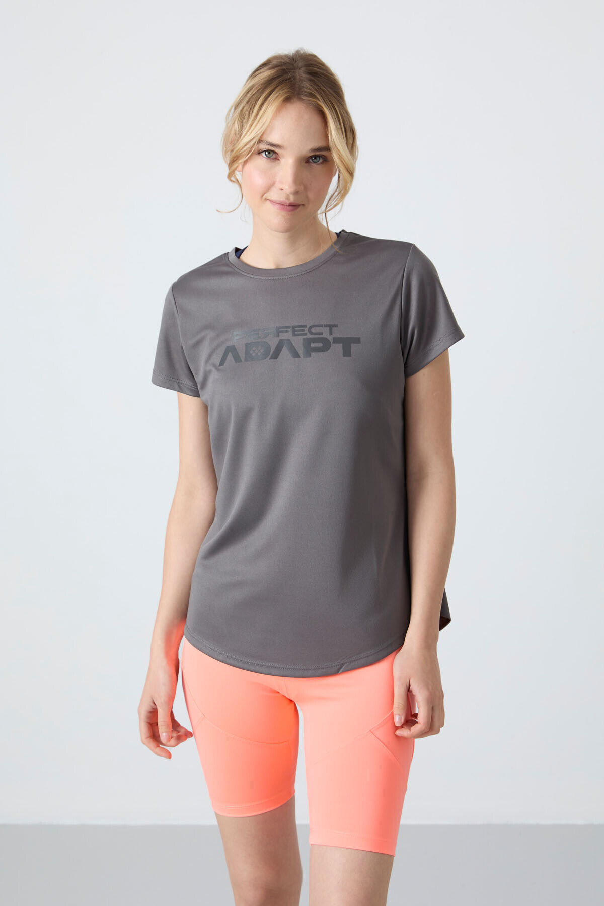 TommyLife Koyu Gri Nefes Alan Dokulu İnce Esnek Standart Fit Performans Kadın T-Shirt - 97283