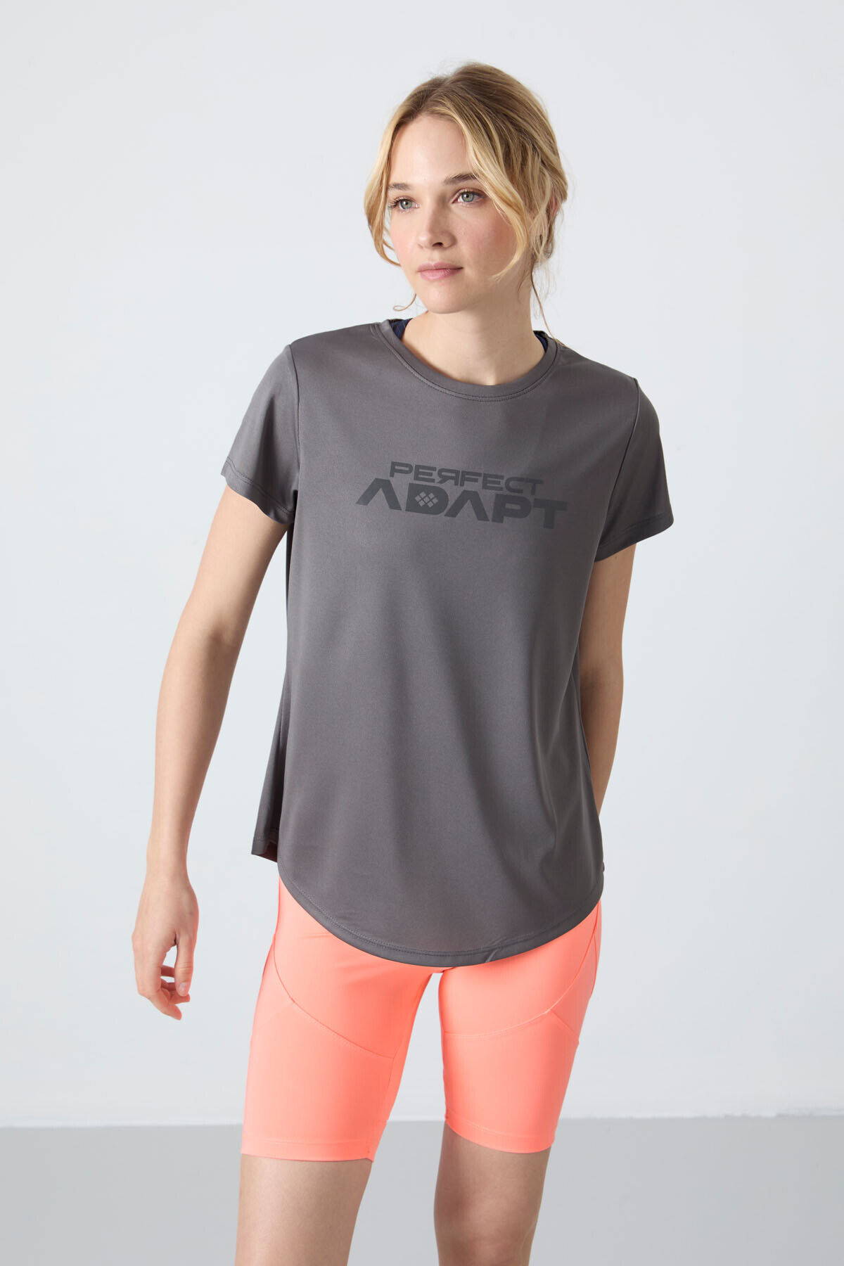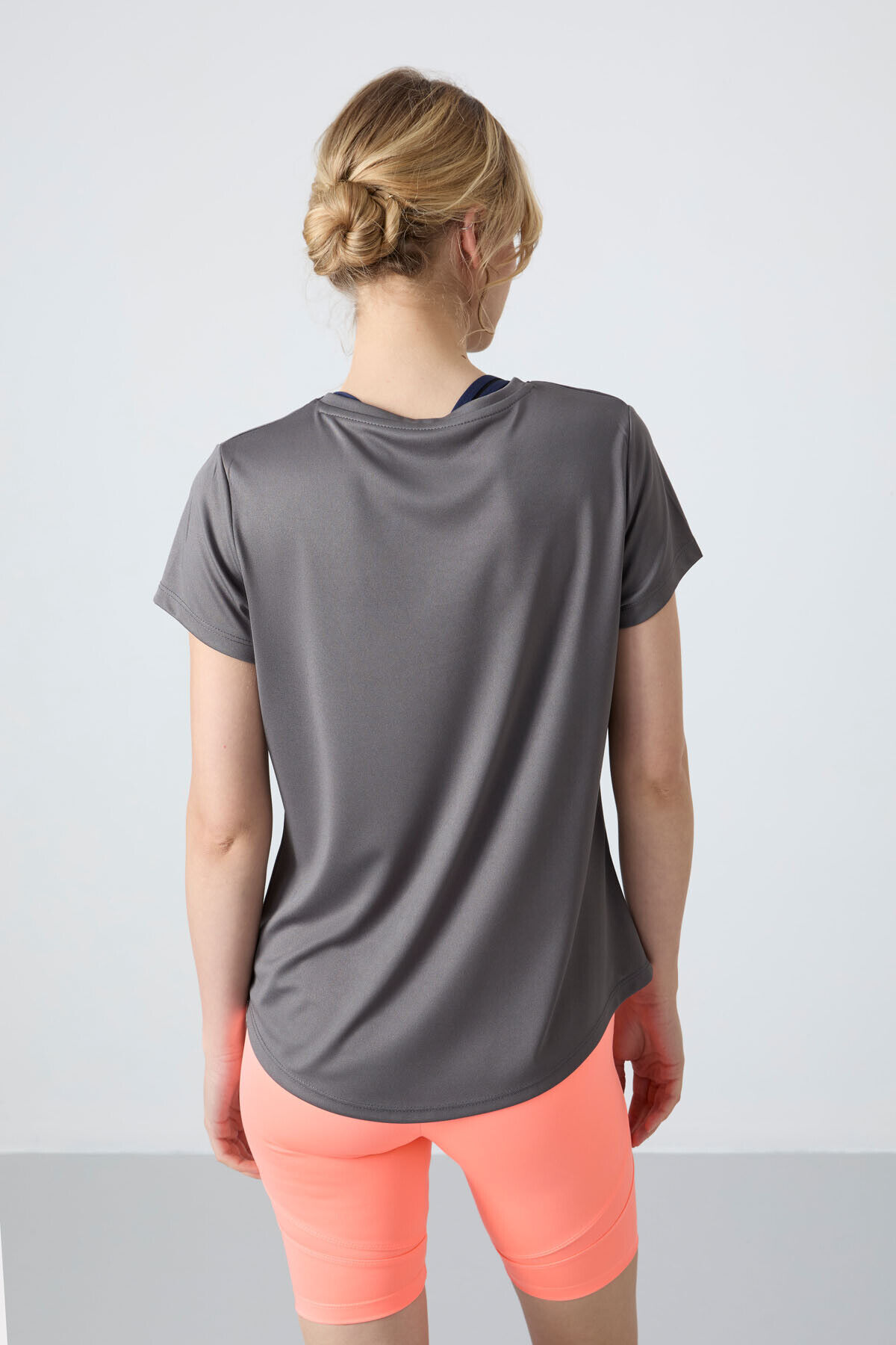 TommyLife Koyu Gri Nefes Alan Dokulu İnce Esnek Standart Fit Performans Kadın T-Shirt - 97283