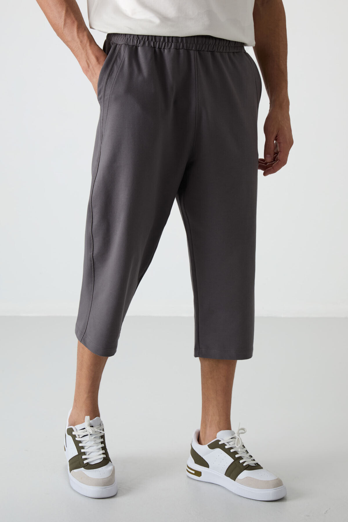 TommyLife Koyu Gri Pamuklu Yumuşak Dokulu Standart Fit Nakışlı Erkek Kapri - 83102
