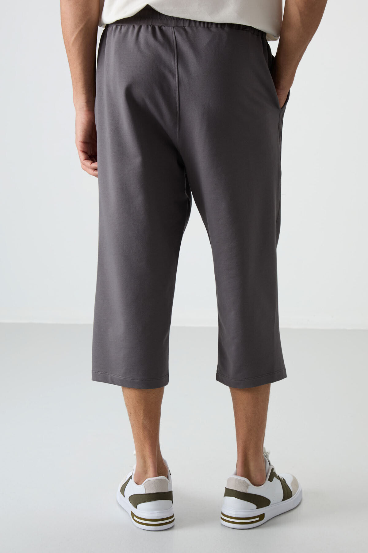 Koyu Gri Pamuklu Yumuşak Dokulu Standart Fit Nakışlı Erkek Kapri - 83102