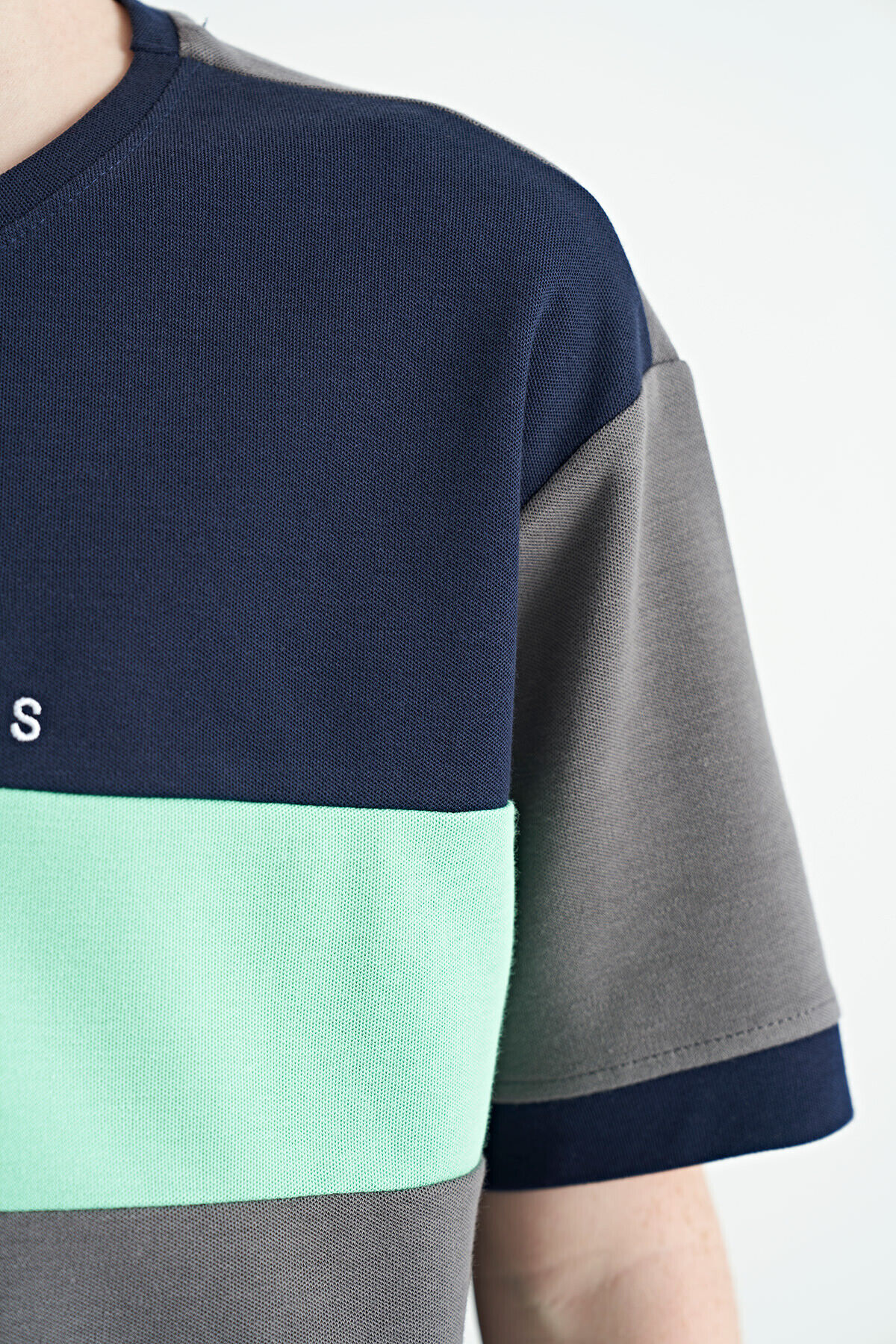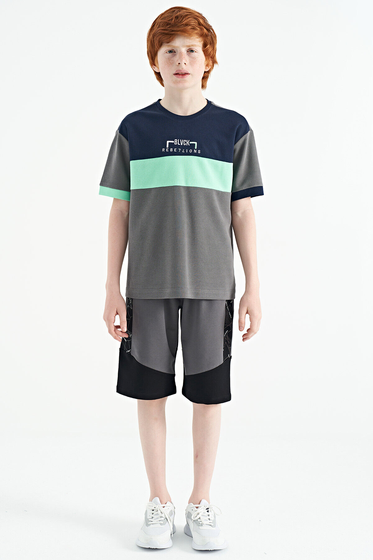 TommyLife Koyu Gri Renk Geçişli Nakışlı Oversize Erkek Çocuk T-Shirt - 11159
