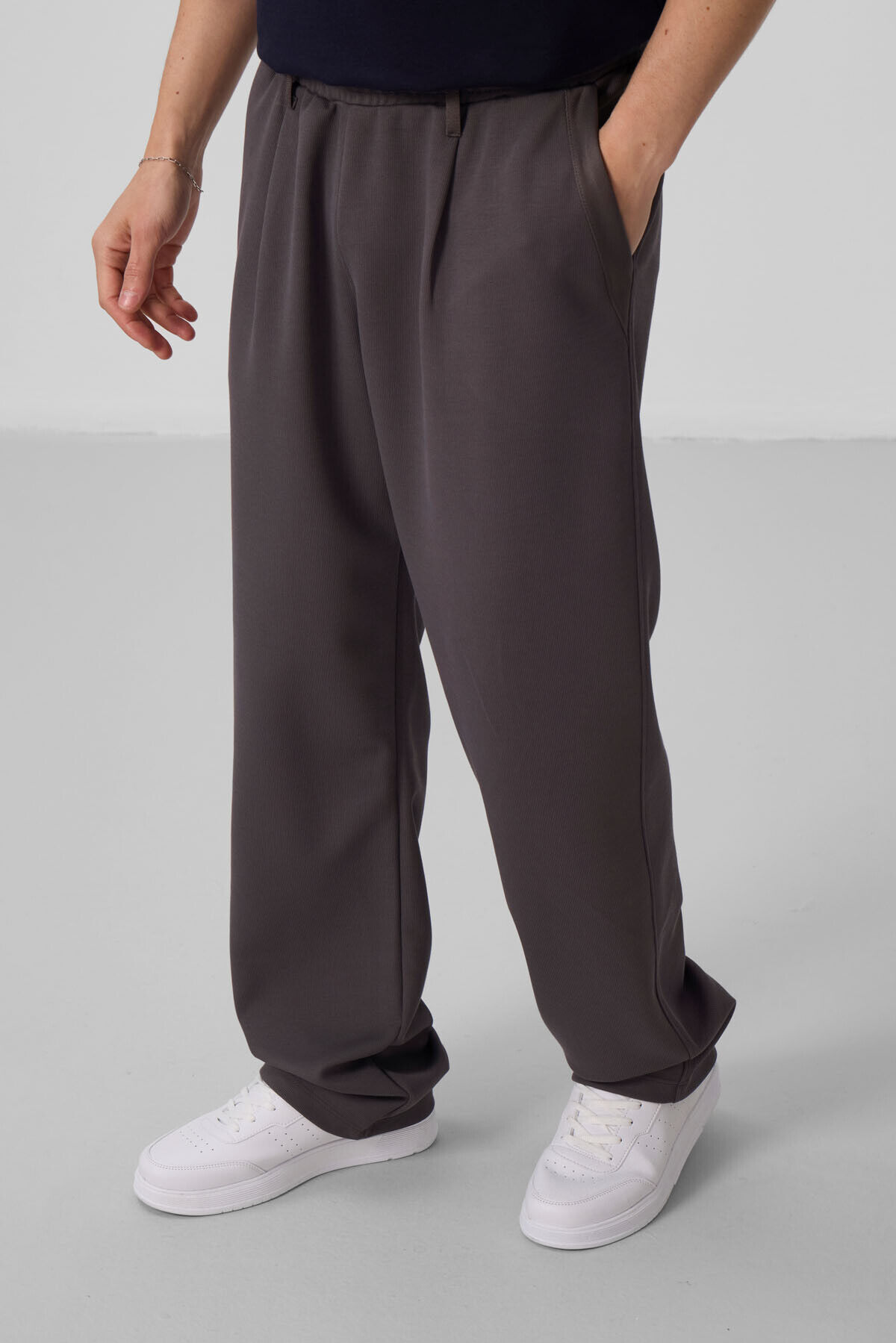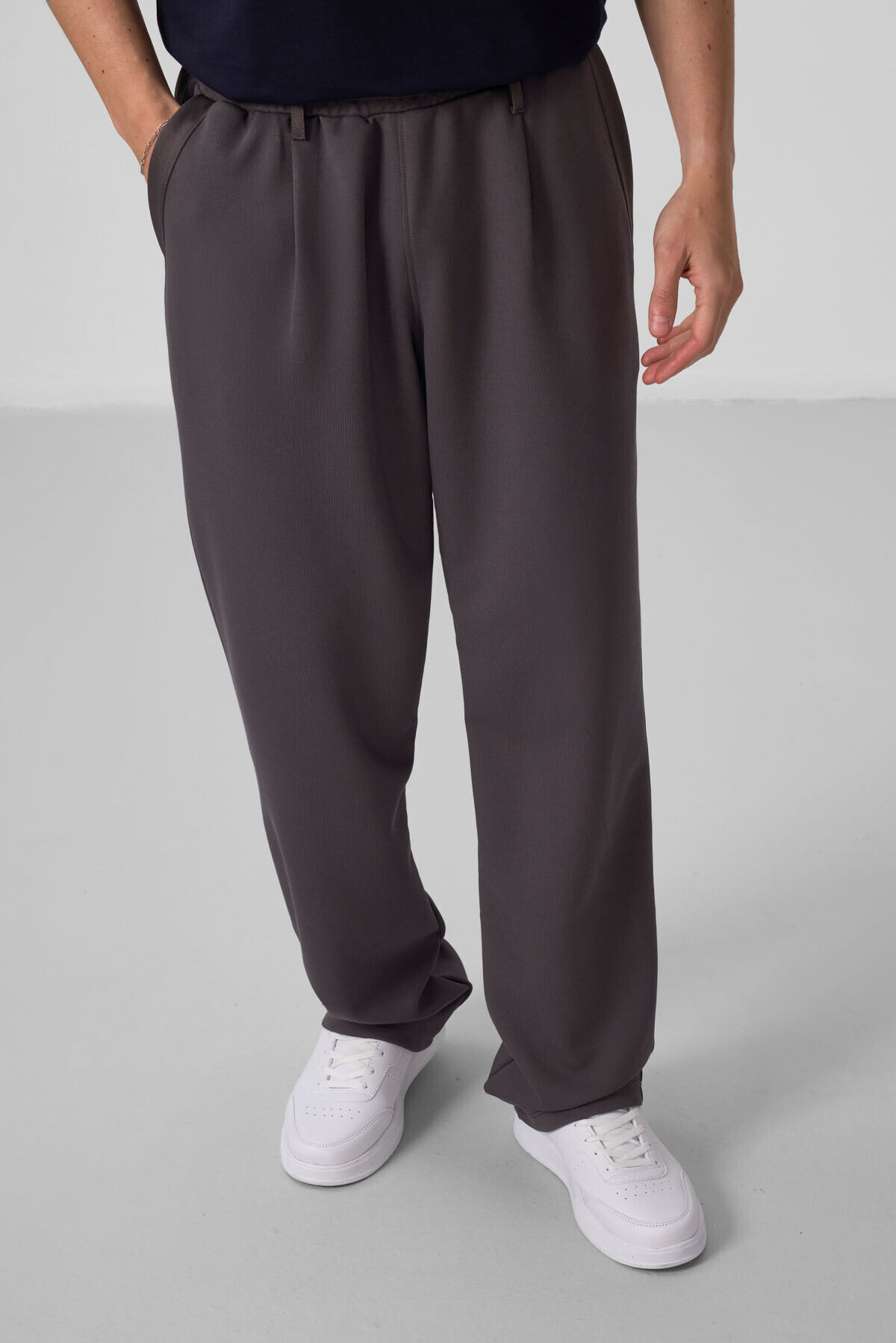 TommyLife Koyu Gri Yüzeyi Dokulu Rahat Form Palazzo Erkek Pantolon - 82163