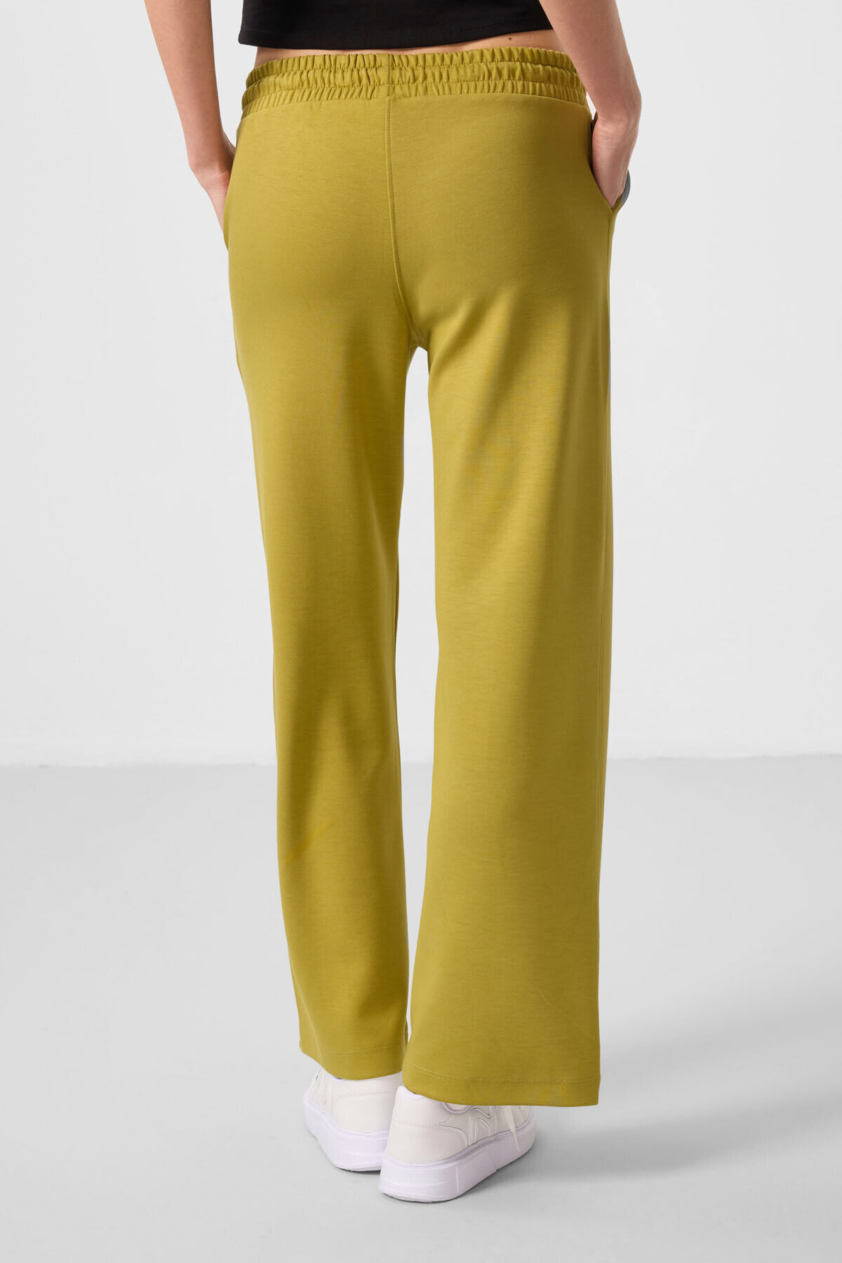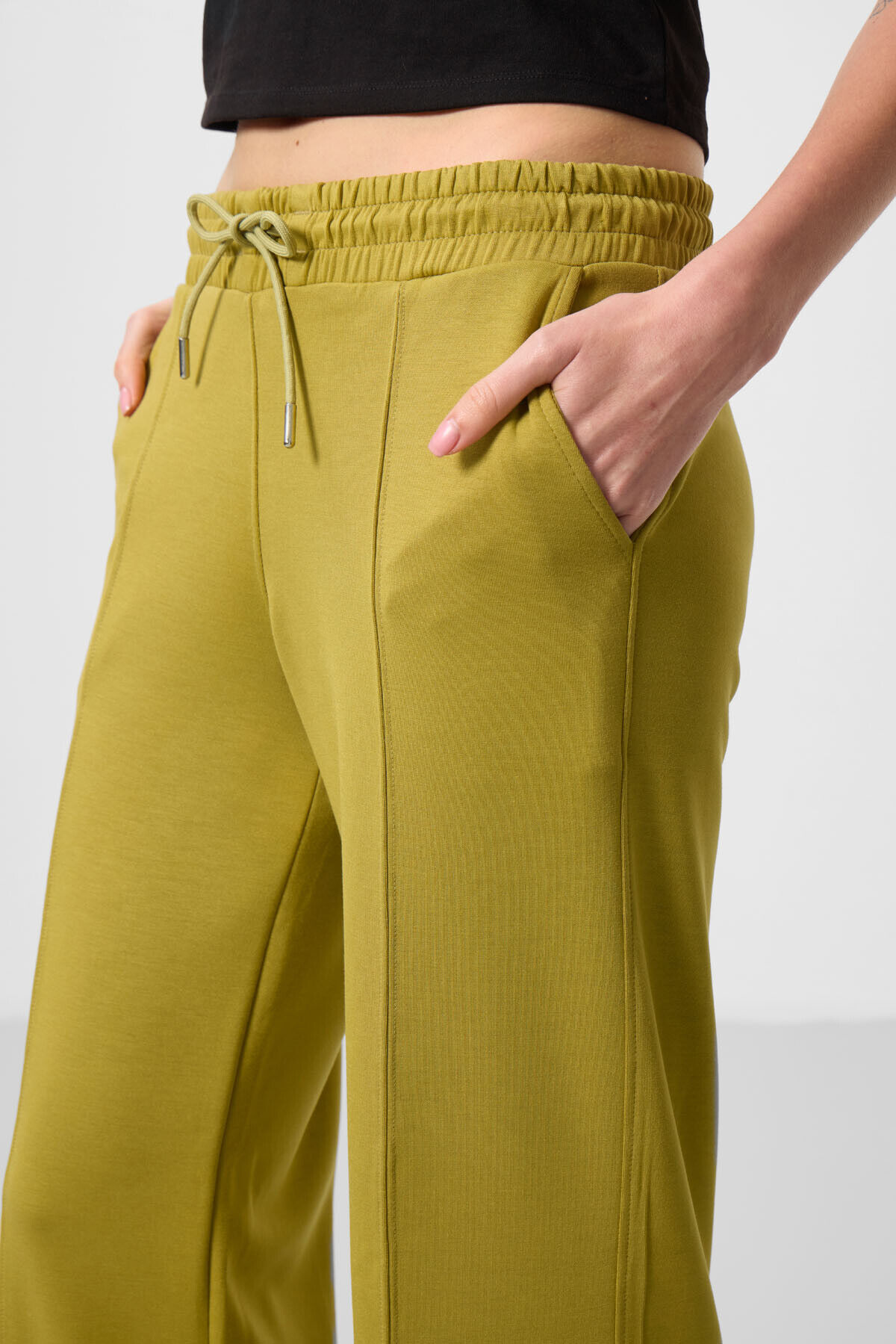 TommyLife Koyu Hardal Yumuşak Dokulu Cepli Ön Dikiş Detaylı Kadın Palazzo Pantolon - 94670