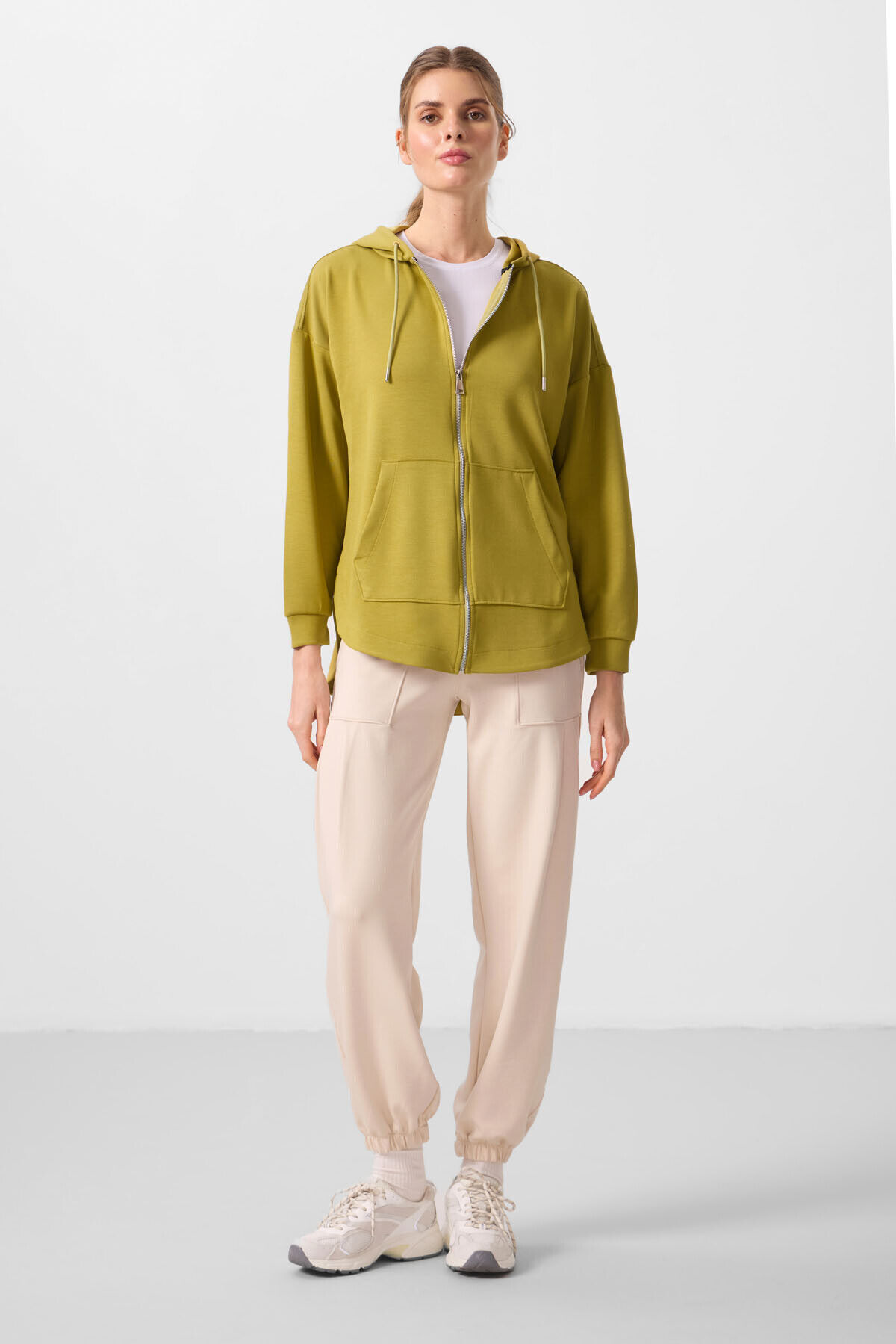Koyu Hardal Yumuşak Dokulu Kapüşonlu Oversize Kadın Tunik Sweatshirt - 97302
