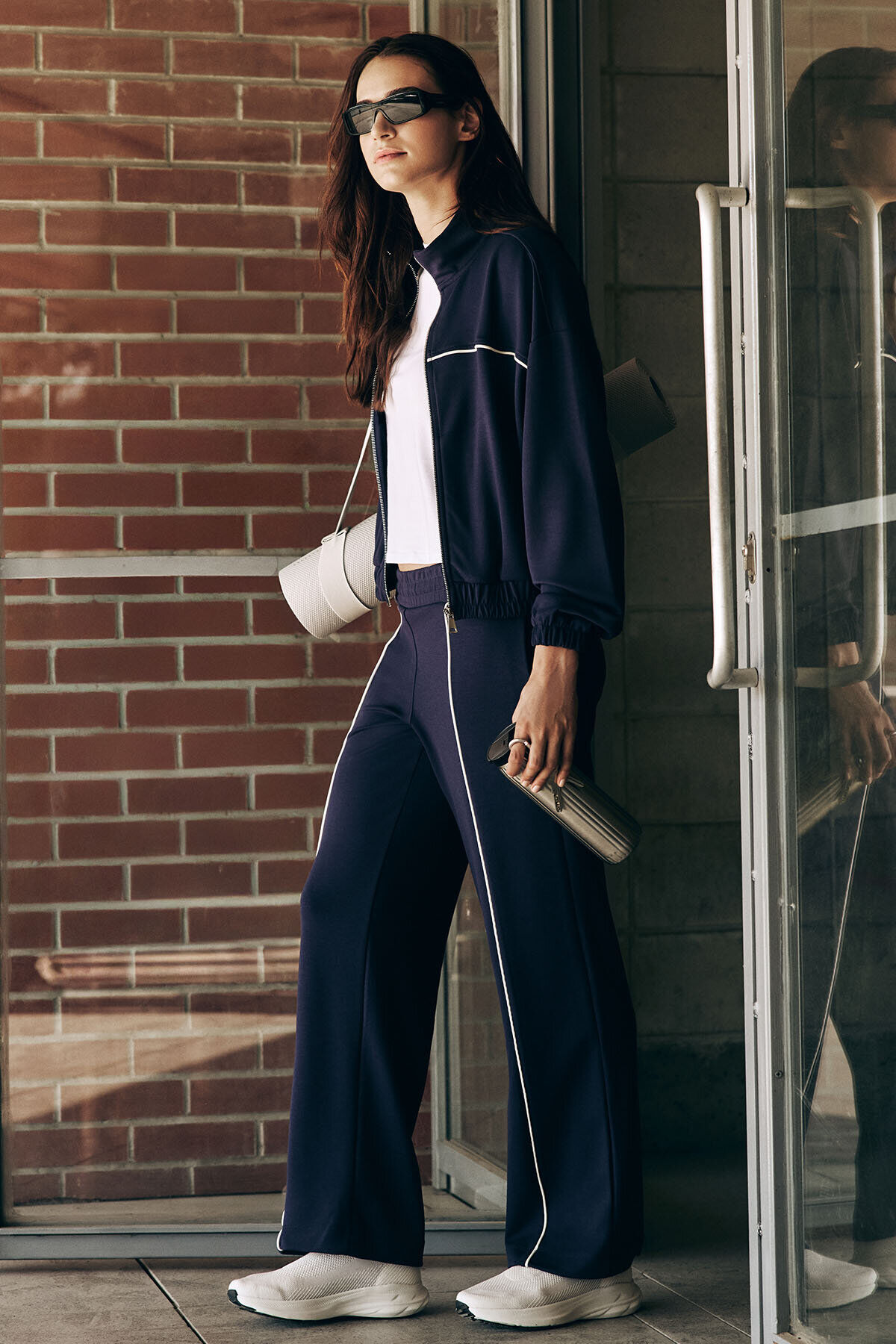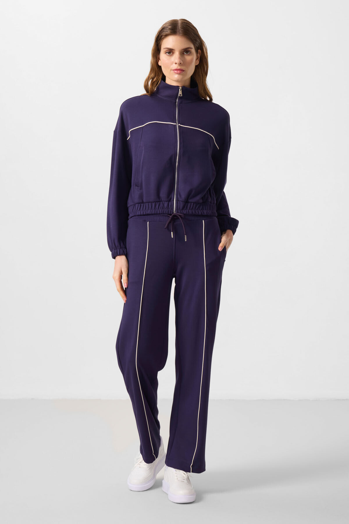 TommyLife Koyu Mor Yumuşak Dokulu Dik Yaka Oversize Lastikli Kadın Eşofman Takım - 95349