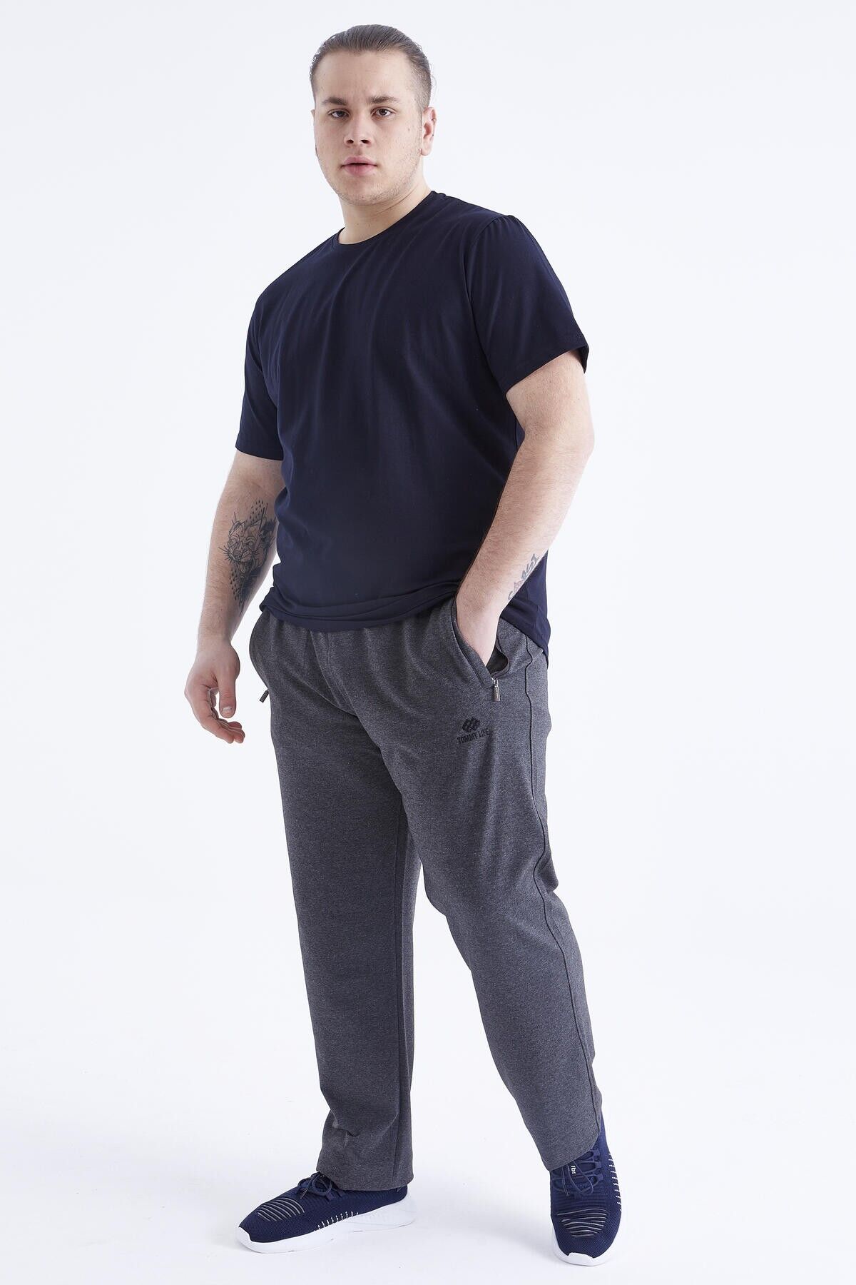 TommyLife Lacivert Basic Kısa Kol O Yaka Büyük Beden Erkek T-Shirt - 88072