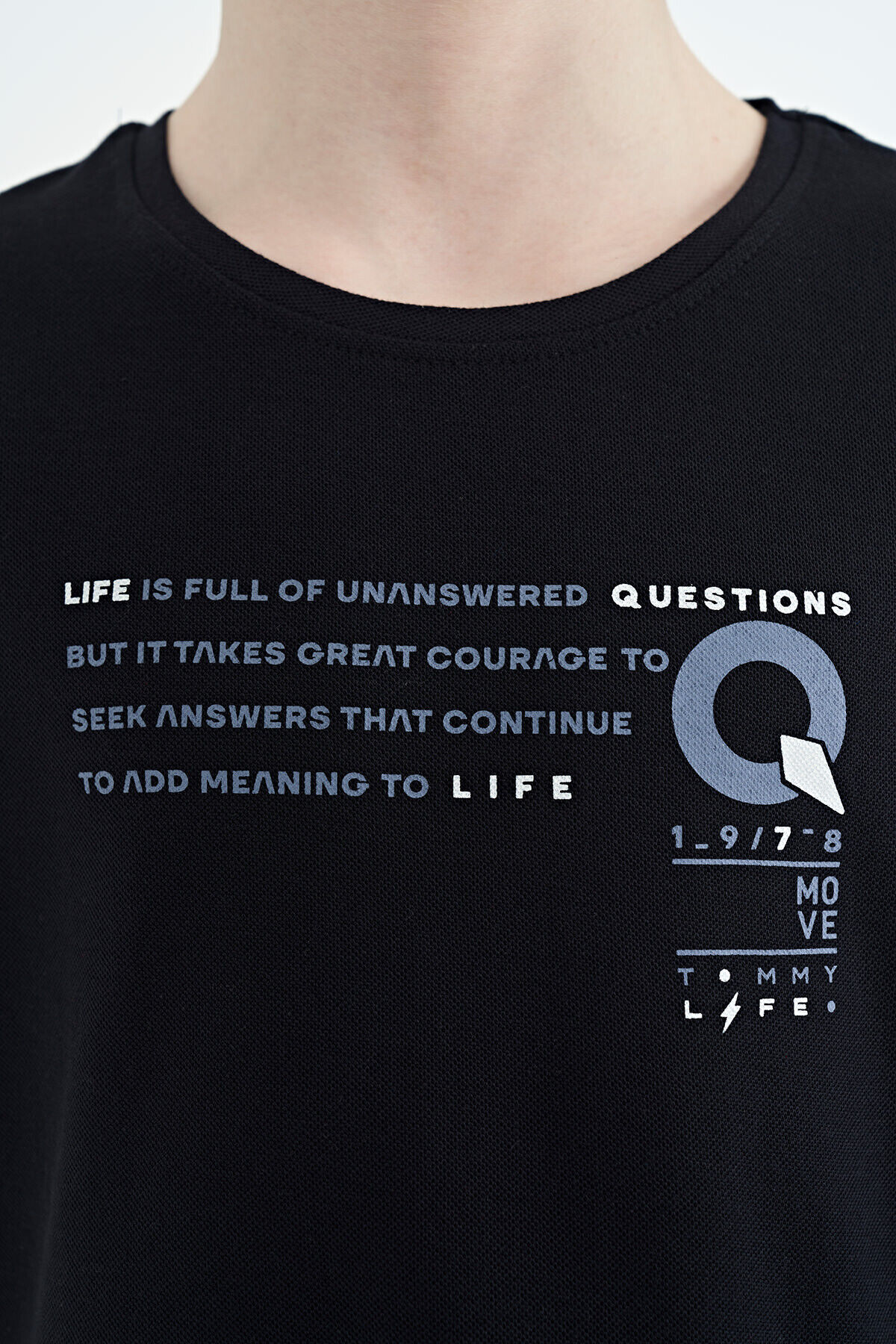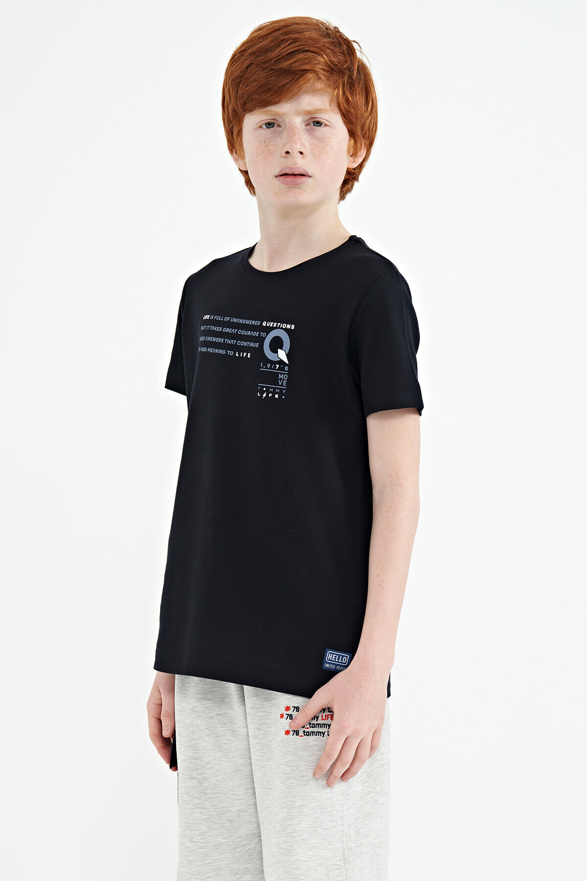 TommyLife Lacivert Baskı Detaylı O Yaka Standart Kalıp Erkek Çocuk T-Shirt - 11145