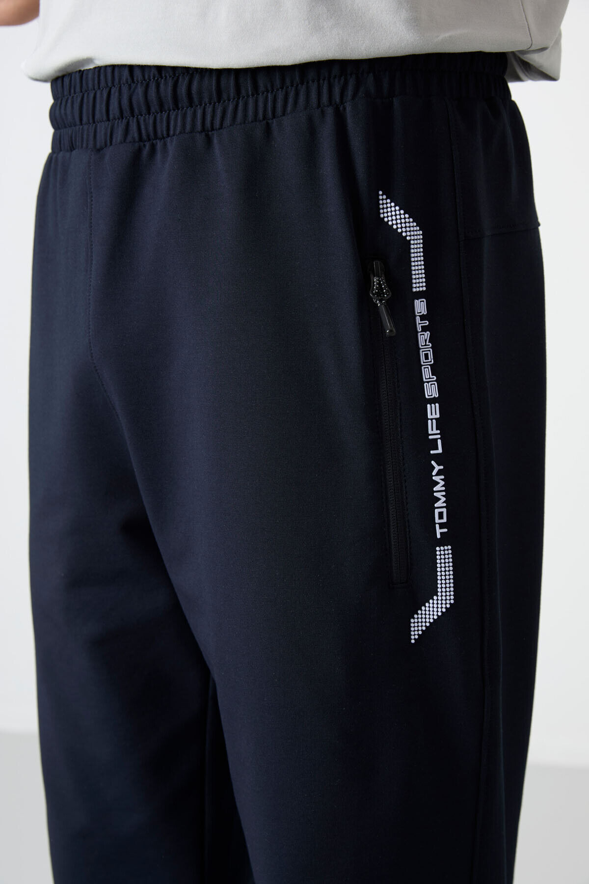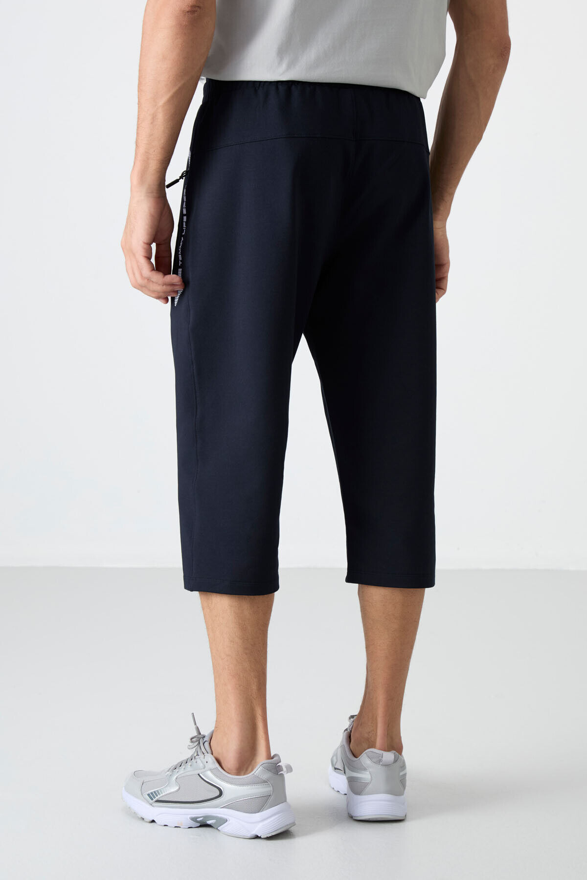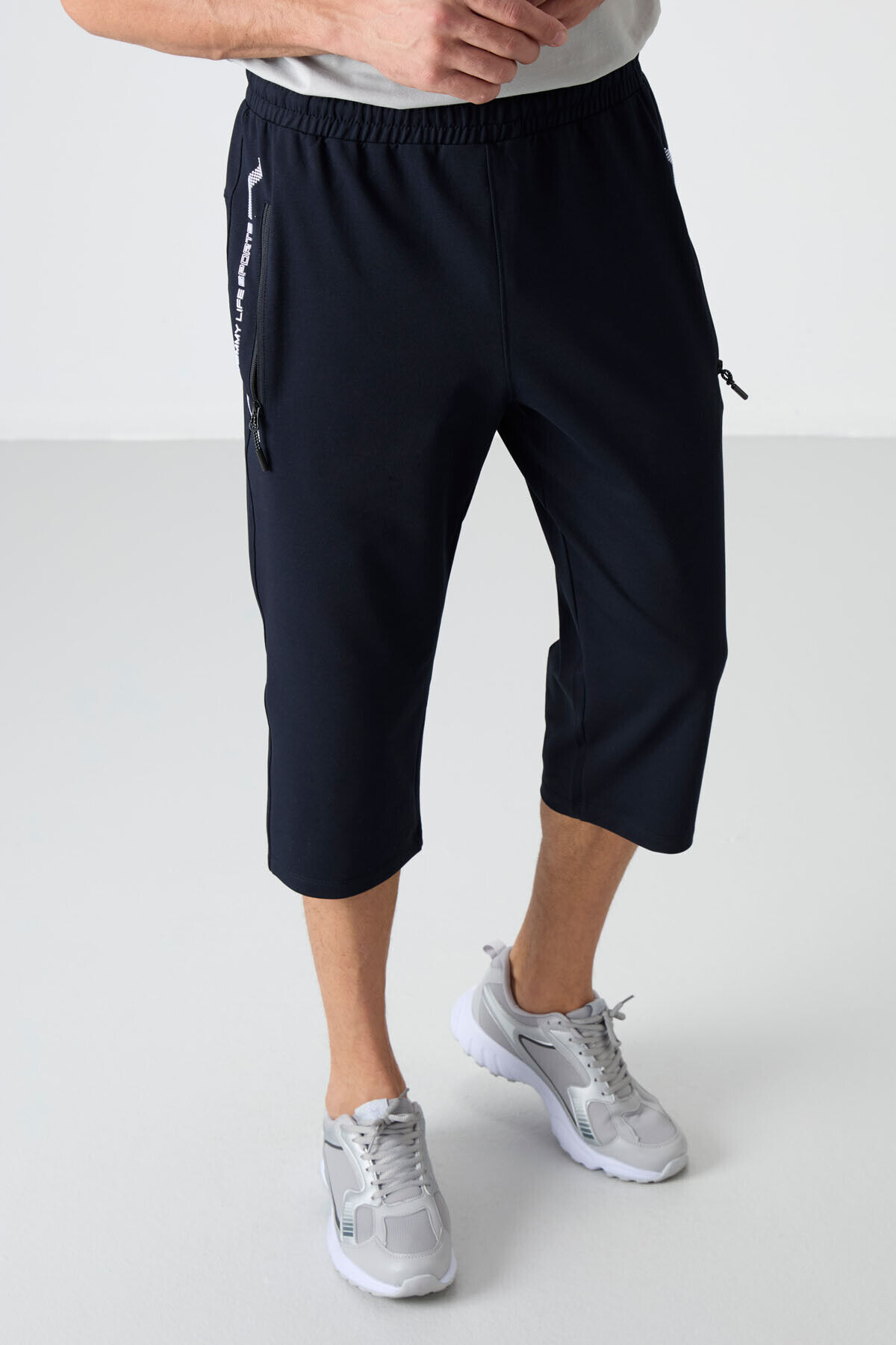 TommyLife Lacivert - Beyaz Fermuar Cepli Standart Kalıp Klasik Paça Erkek Kapri - 83091