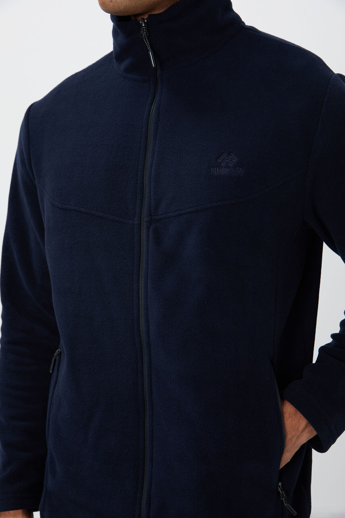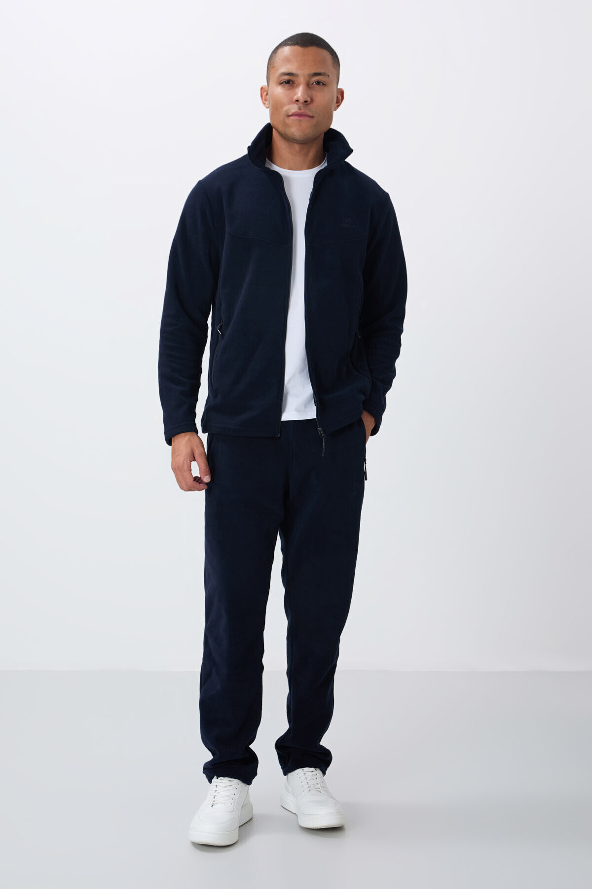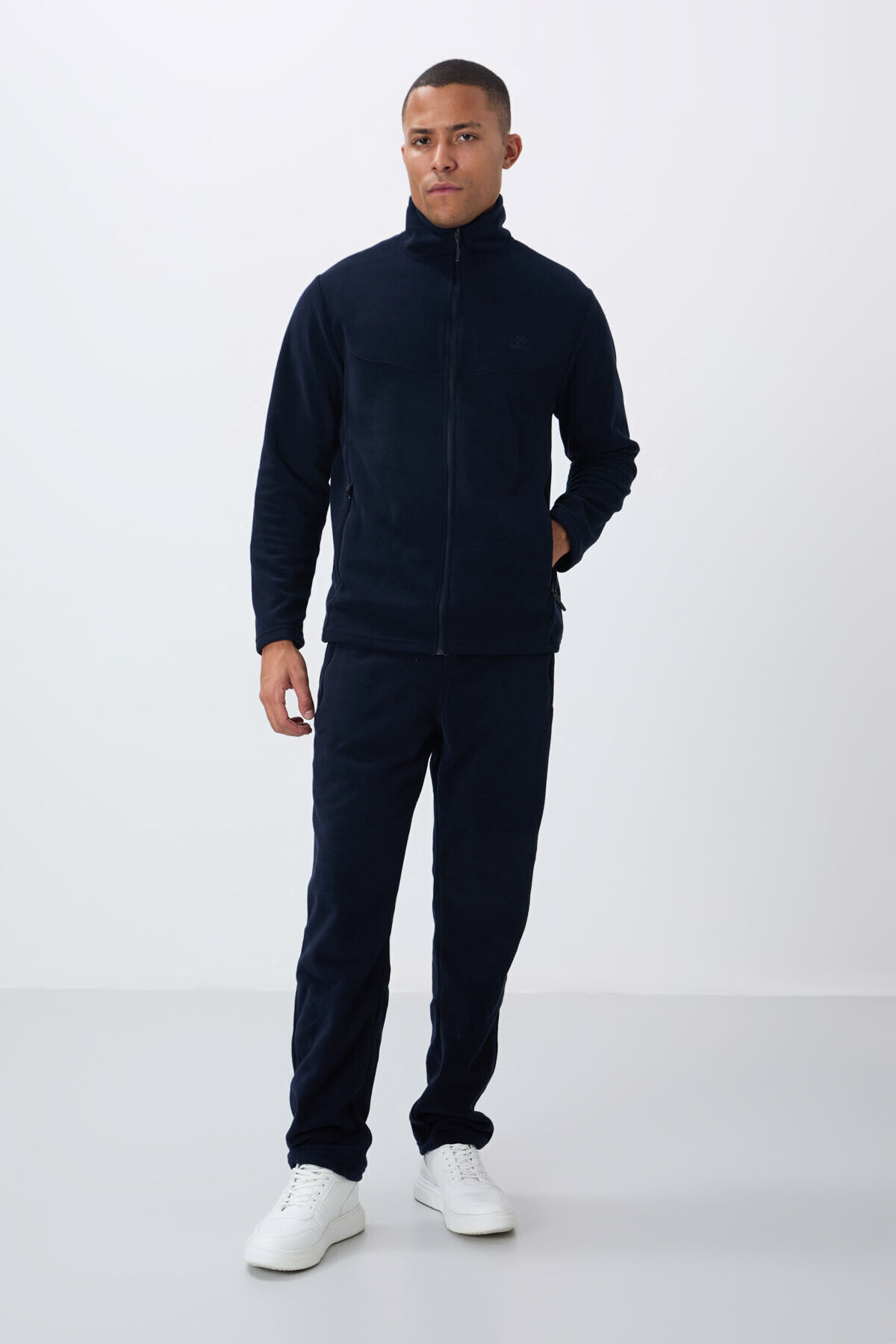TommyLife Lacivert Dik Yaka Basic Fermuar Cepli Standart Kalıp Erkek Polar Eşofman Takımı - 85193