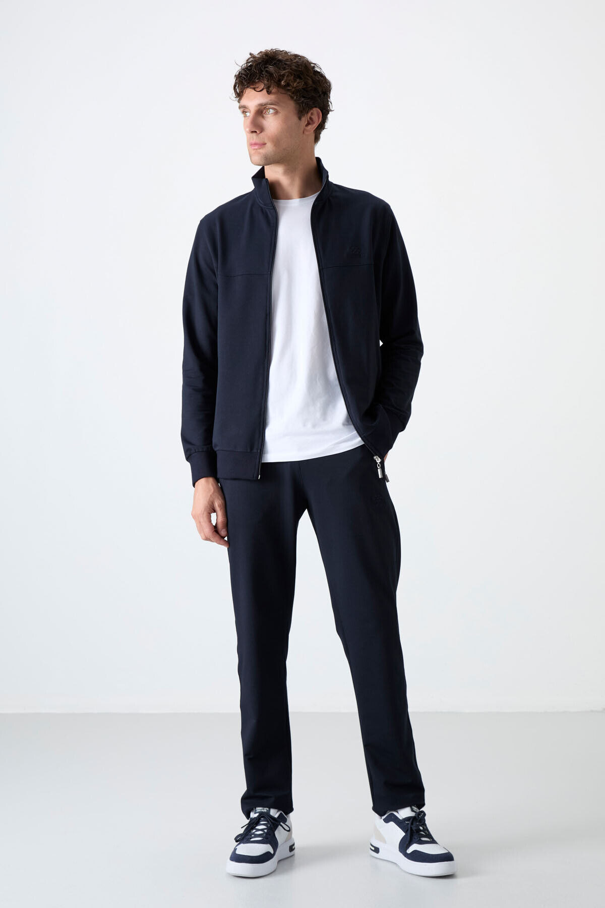 TommyLife Lacivert Dik Yaka Fermuarlı Rahat Form Klasik Paça Erkek Eşofman Takımı - 85072